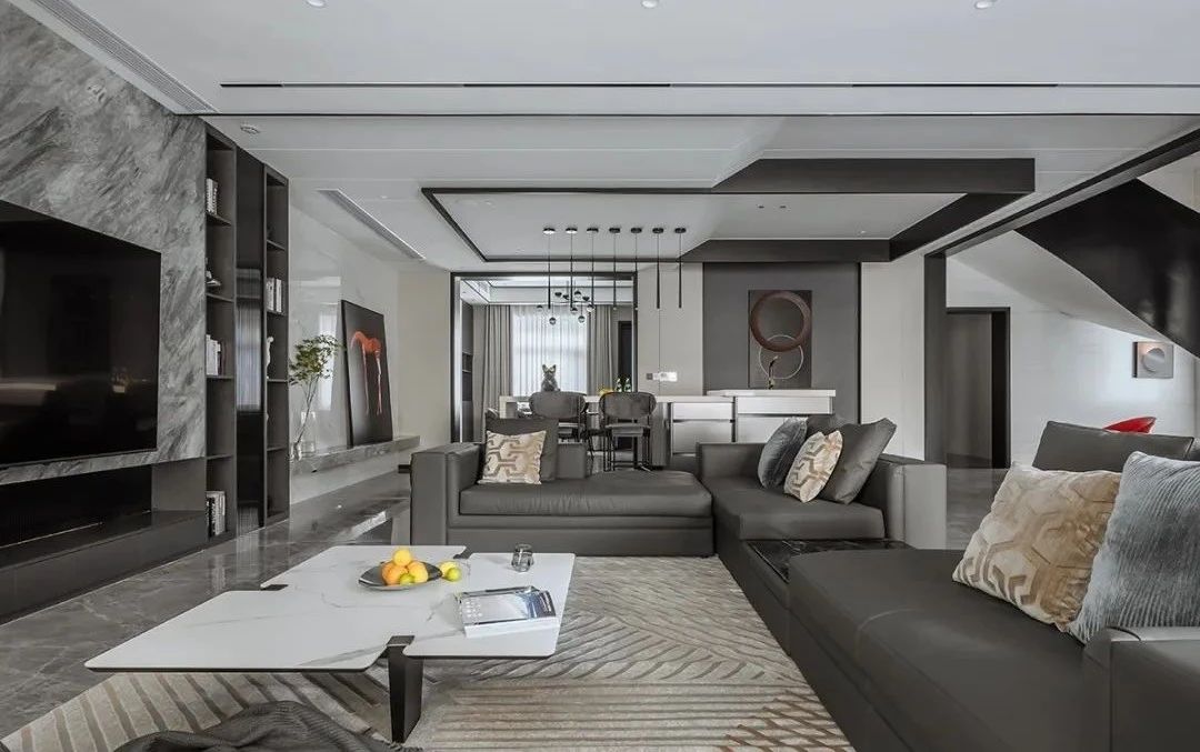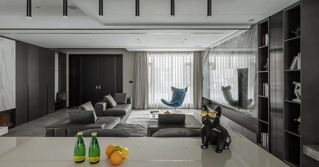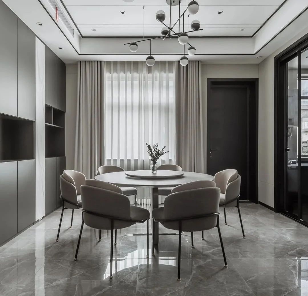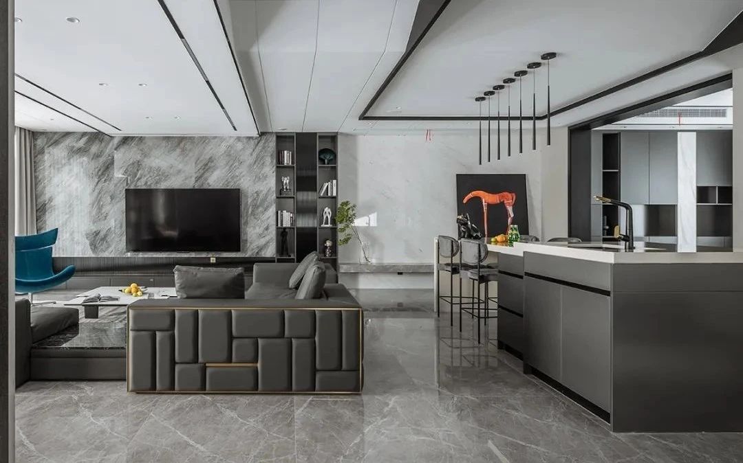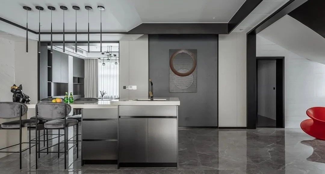 空间中纯粹的艺术光感隐约营造出非凡品位和格调,构筑情感的依托,提升了空间气质的同时保证了生活功能需求,客餐厅中间开放式吧台延续了空间设计的开放性,构建出空间整体自由流畅动线,营造出自然的惬意,在远离都市喧嚣的宝地享受时间的节奏。