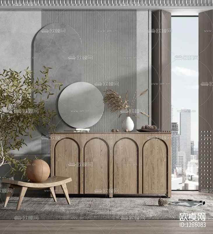现代侘寂边柜3d模型
