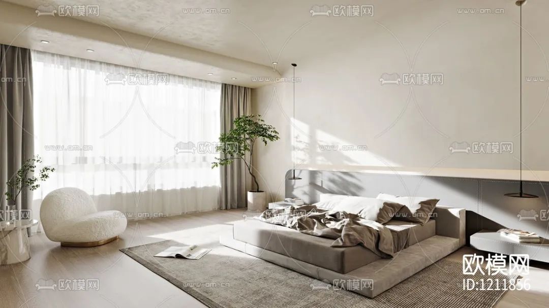 现代侘寂卧室3d模型