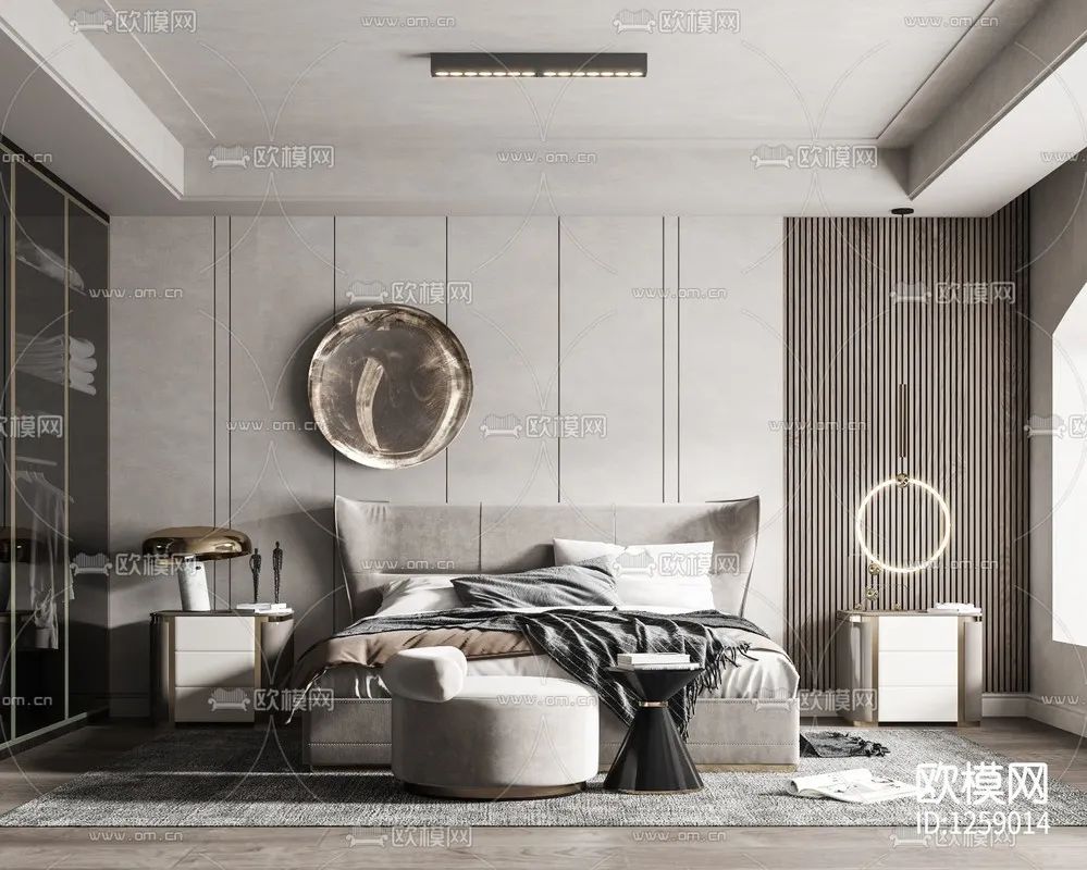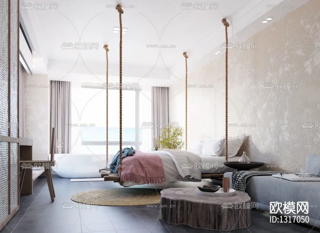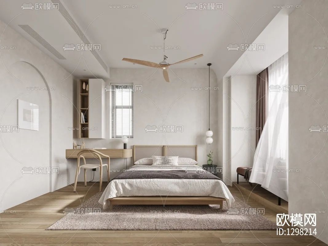 现代侘寂风卧室3d模型