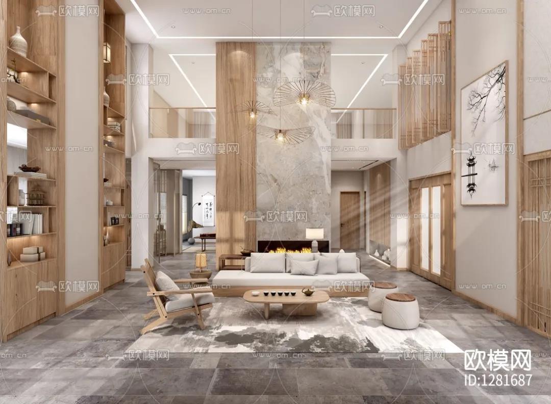 日式侘寂别墅客厅3d模型