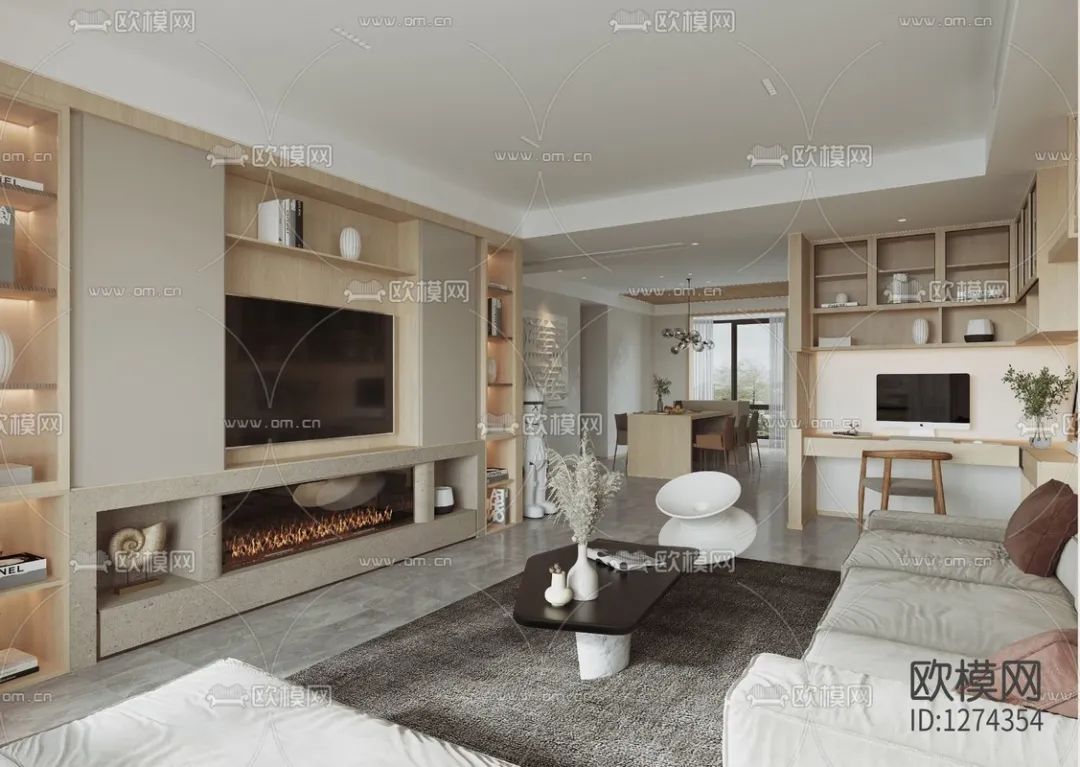 现代侘寂客厅餐厅3d模型