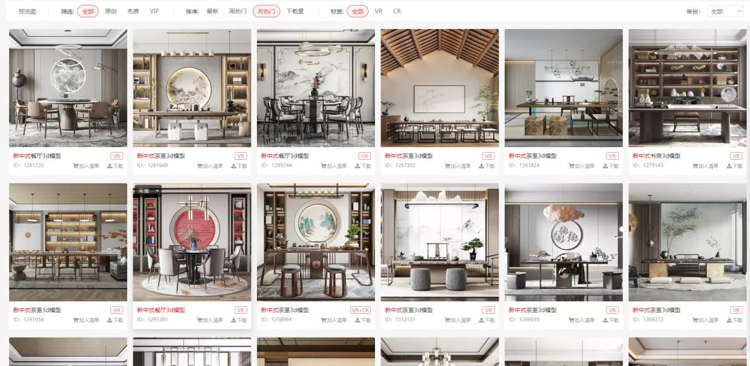 给大家一个传送门,点击关键词立即跳转到'新中式风格3D模型'