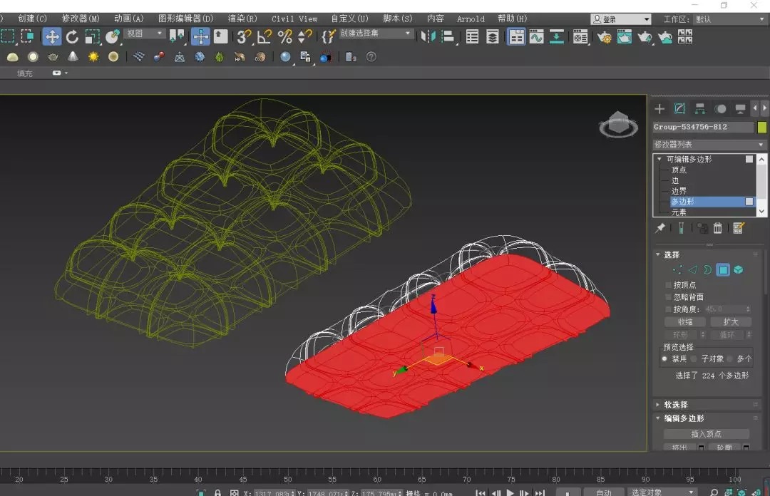 可以转多边形后附加为一个物体