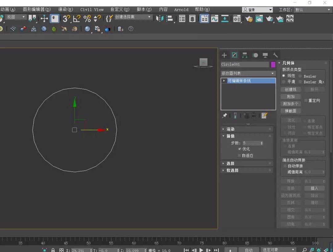 把样条线的步数设置为3可以降低面数