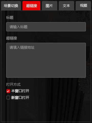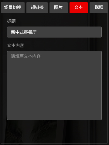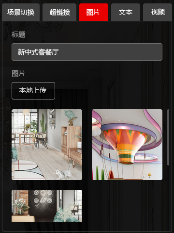 【场景切换】:用于在全景图上进行各个空间的切换、漫游;
