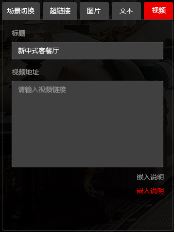 【视频】:用于添加第三方视频介绍,更详尽的展现;
