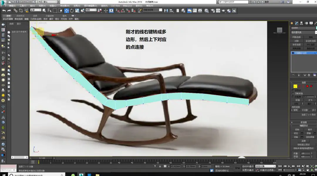 第十步:背板使用“连接命令”添加两条线,做下凹时会用到。如图所示: