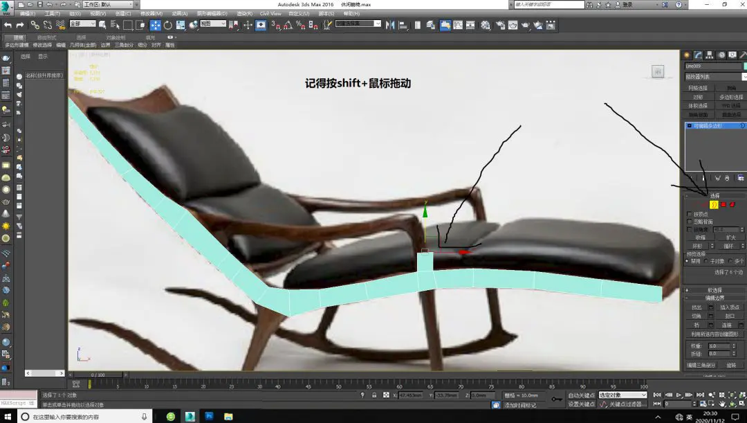 第十一步:靠背会有向下凹的效果,调整如如所示: