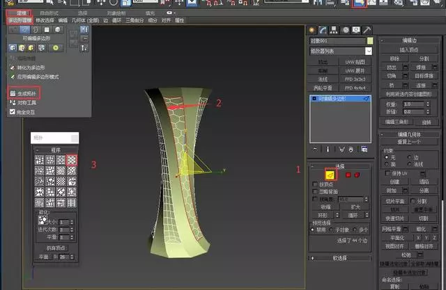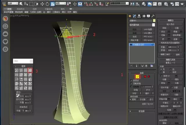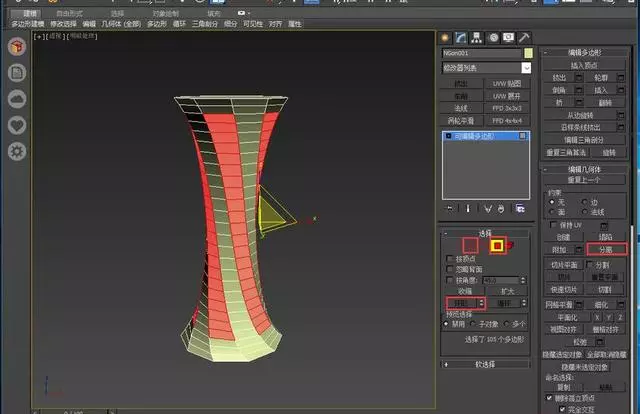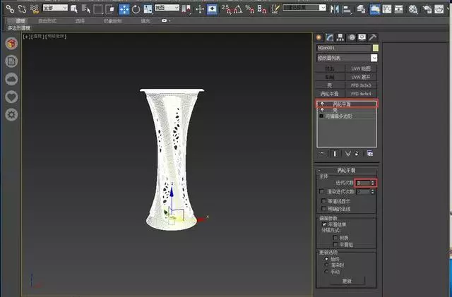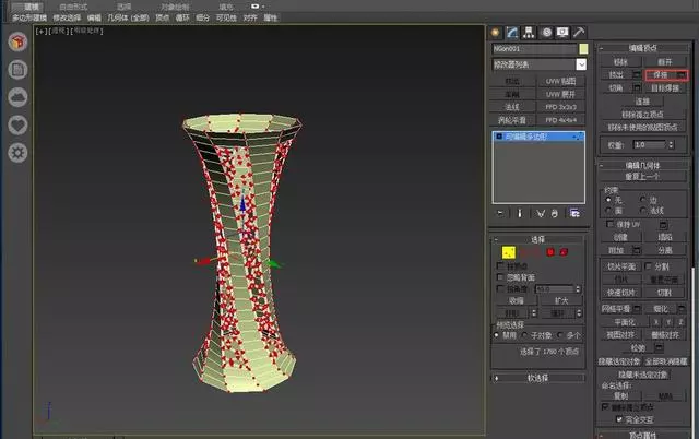 3、转化为可编辑多边形,加一个FFD4*4*4命令,进入控制点层级,调节花瓶的形状;