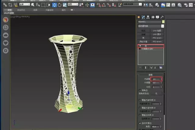 10、再次执行插入命令,按多边形插入1mm。进入点层级,选中所有点,焊接;