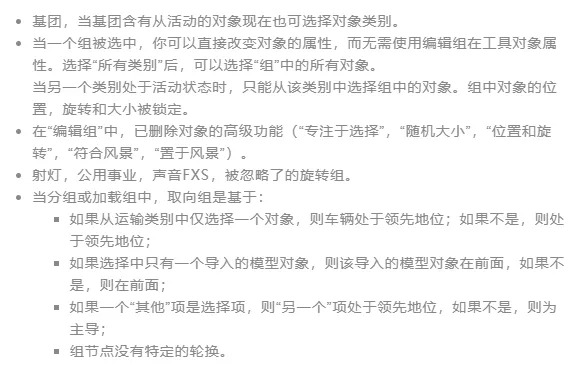 组中的对象是可选的,而无需进入“编辑组”。这样可以快速调整对象属性,例如更改颜色,调整灯光的参数等。要更改“位置”,“旋转”或“大小”时,才仍然需要输入“编辑组”。
