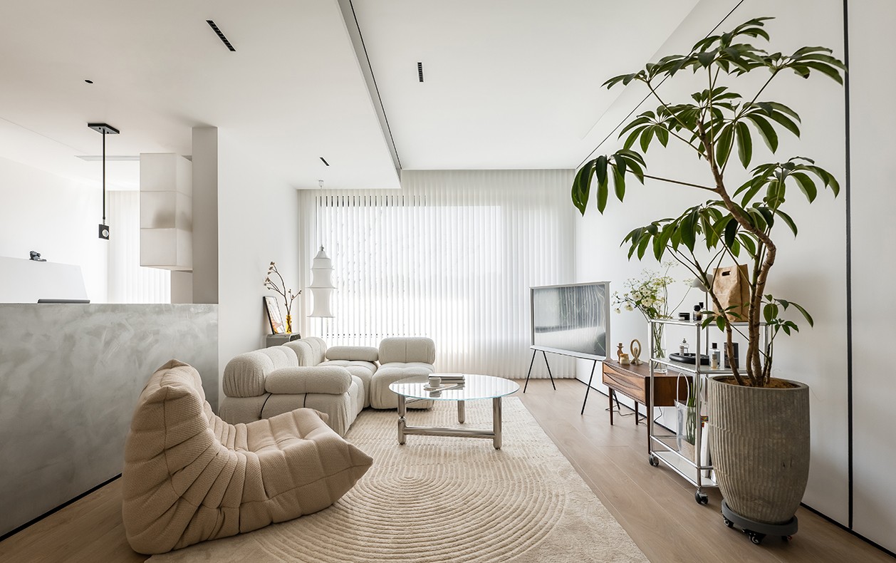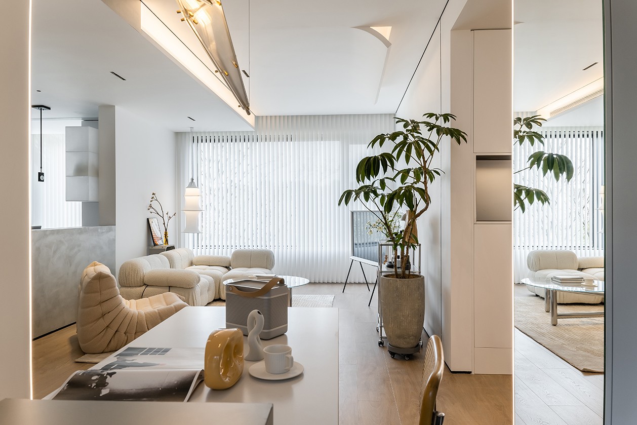 极简绝不意味着单一。这一次,尝试过纯黑,也挑战过红色的FF将以白色做基调,配合原木的温暖与绿植的生机,将自然、盐系、节奏感、呼吸感等通通融入其中。带着对极简主义多样化的理解,走进这个看似没有那么极简的家。