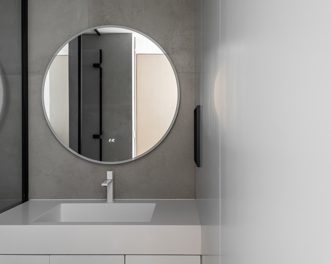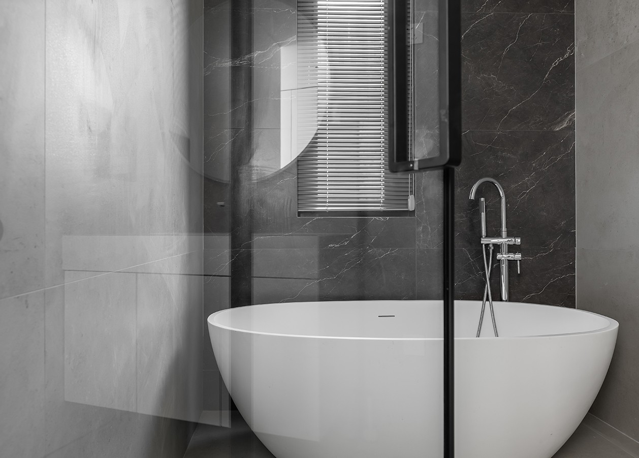 主卫将极简主义贯彻到底,以灰色水泥瓷砖做底,白色点缀其中,空间显得简练而明朗。