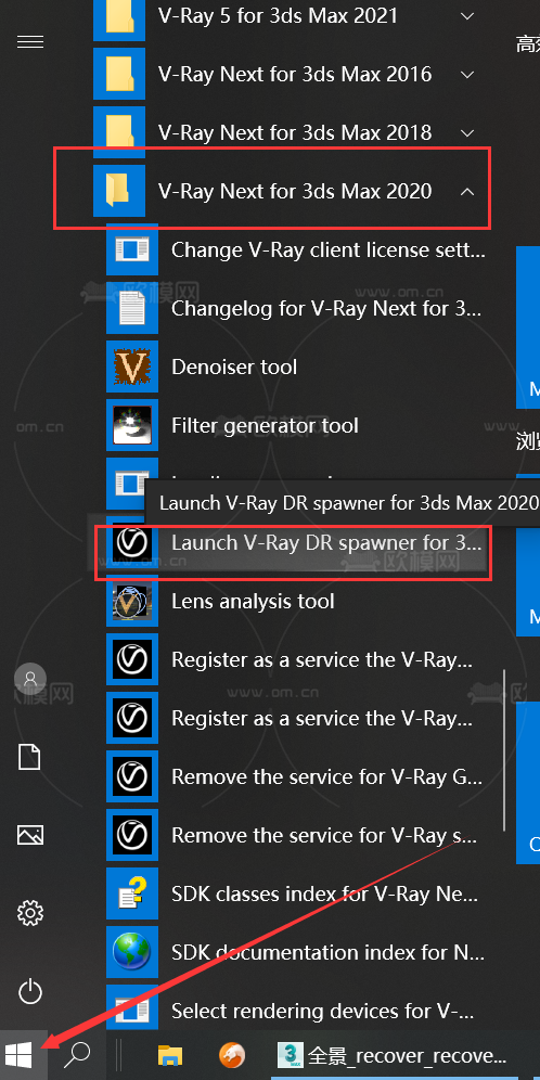 (5)设置好主机之后然后在分机开始菜单里面打开Launch V-Ray DR spawner for 3ds Max 2020程序即可。