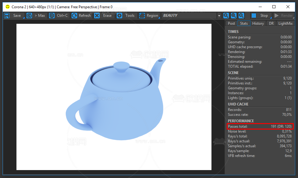 达到指定的渲染限制后,或在主计算机上手动停止渲染后,渲染将停止。在渲染限制的情况下,将根据主机统计信息来考虑每个限制,而不是针对每个从属设备。例如,如果将限制设置为10分钟,则渲染将在主机上而不是从属设备上经过10分钟后停止。如果将其设置为100次通过,则无论每个从机已渲染多少次通过,总次数(在主机上报告)都将达到100次后,它将停止。如果使用噪声限制,则一旦在主机上报告了目标噪声水平,它将停止。