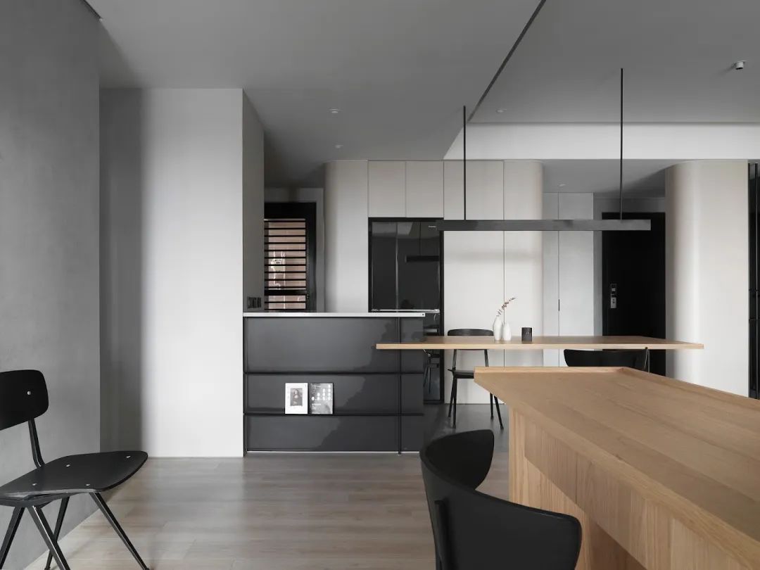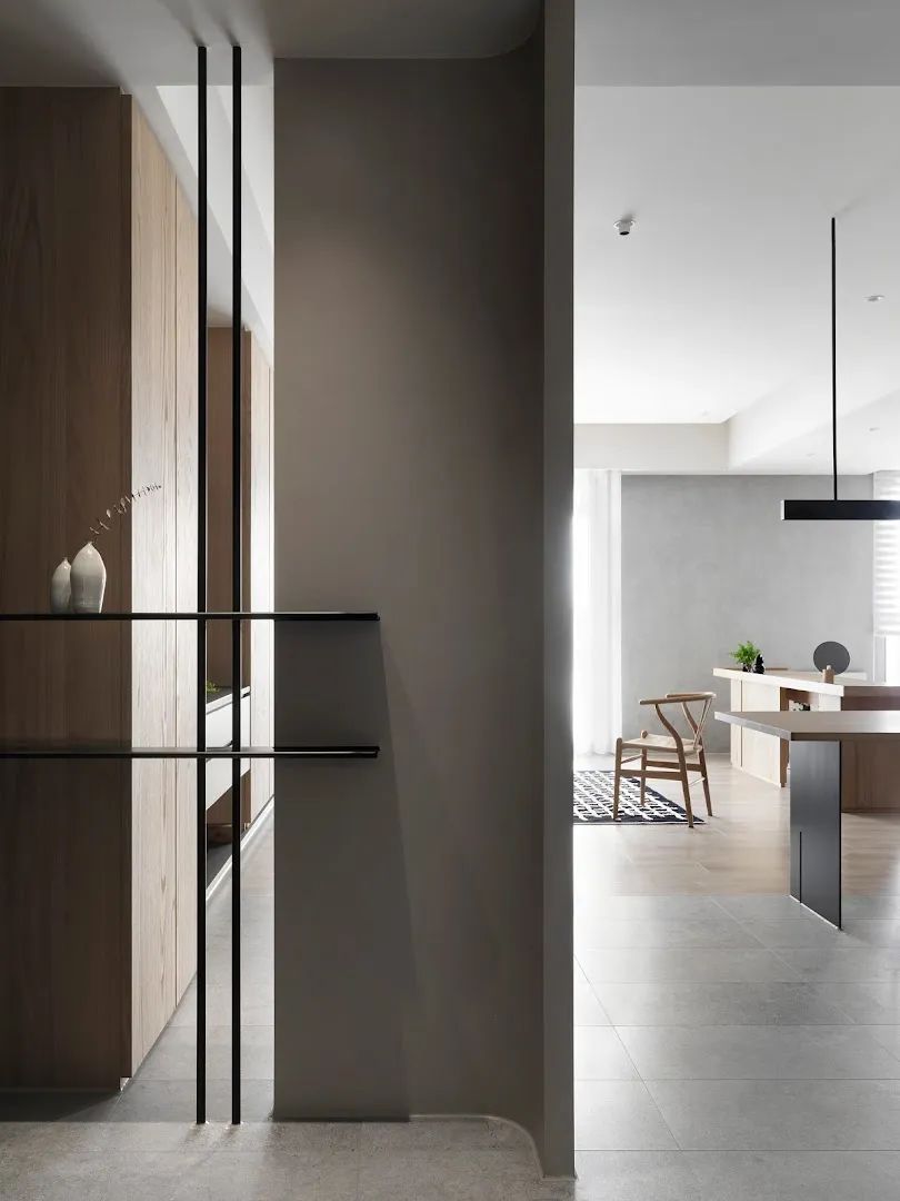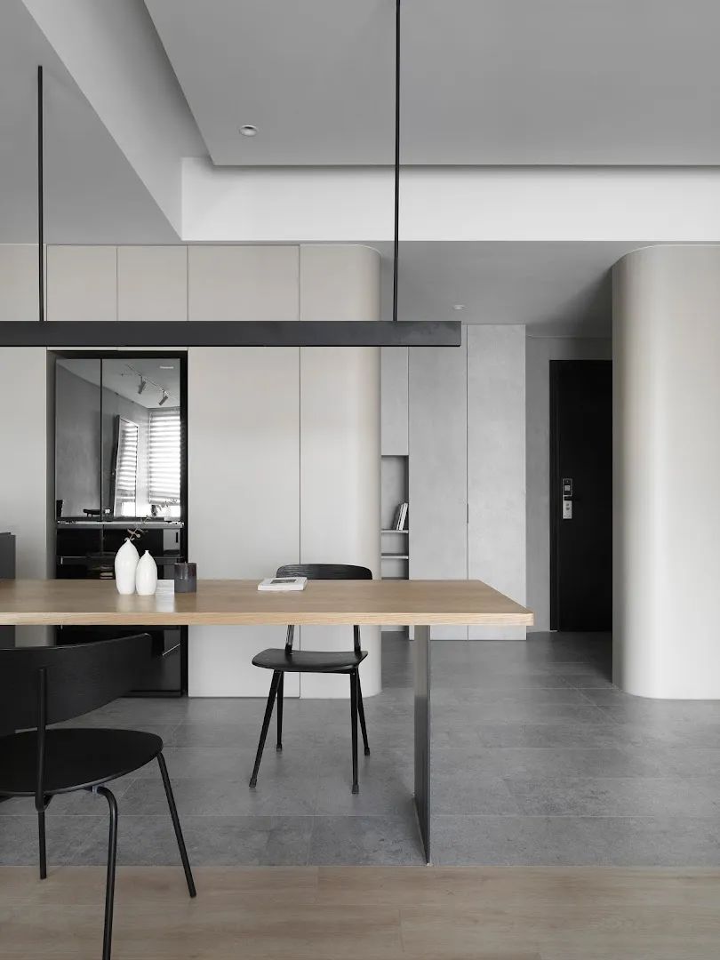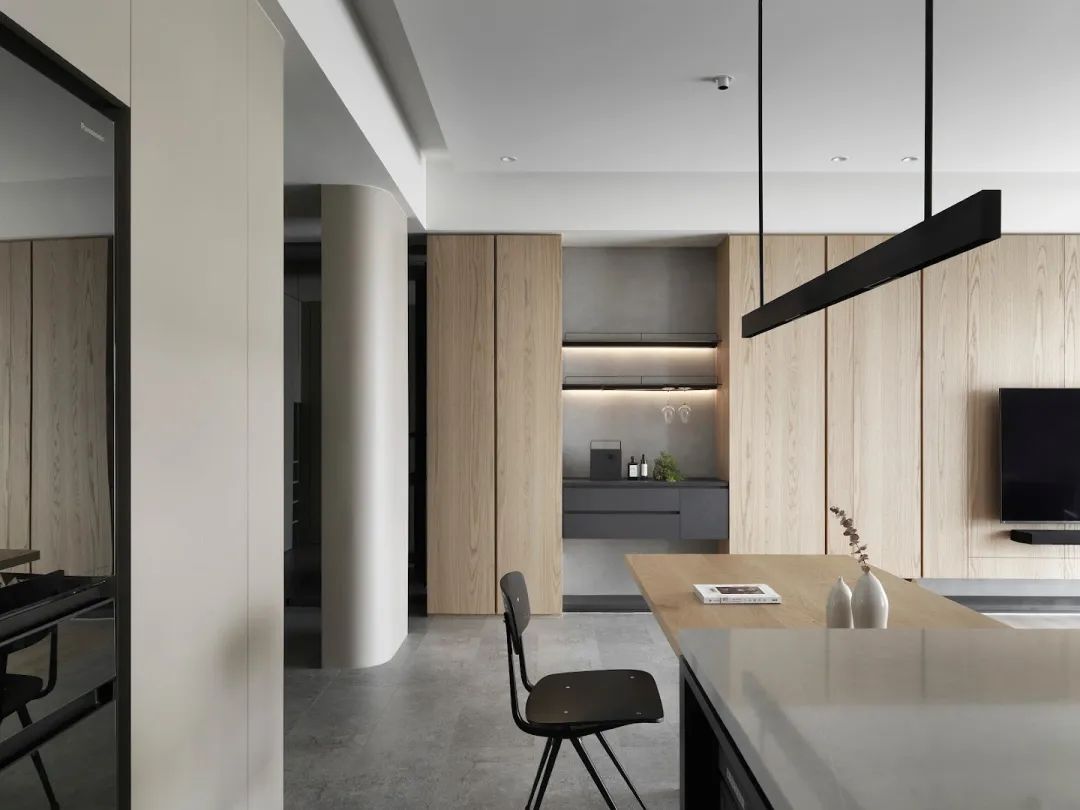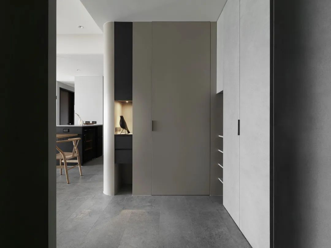 这间位于中国·高雄的107㎡公寓由室内设计公司TT DESIGN STUDIO设计,公寓使用量块建模和材料来引导室内动线和空间变换。储藏室采用弧形结构并作为入口隔断屏风。设计师刻意减少过多的颜色和复杂的形状,作为进屋后改变心情的中介空间。