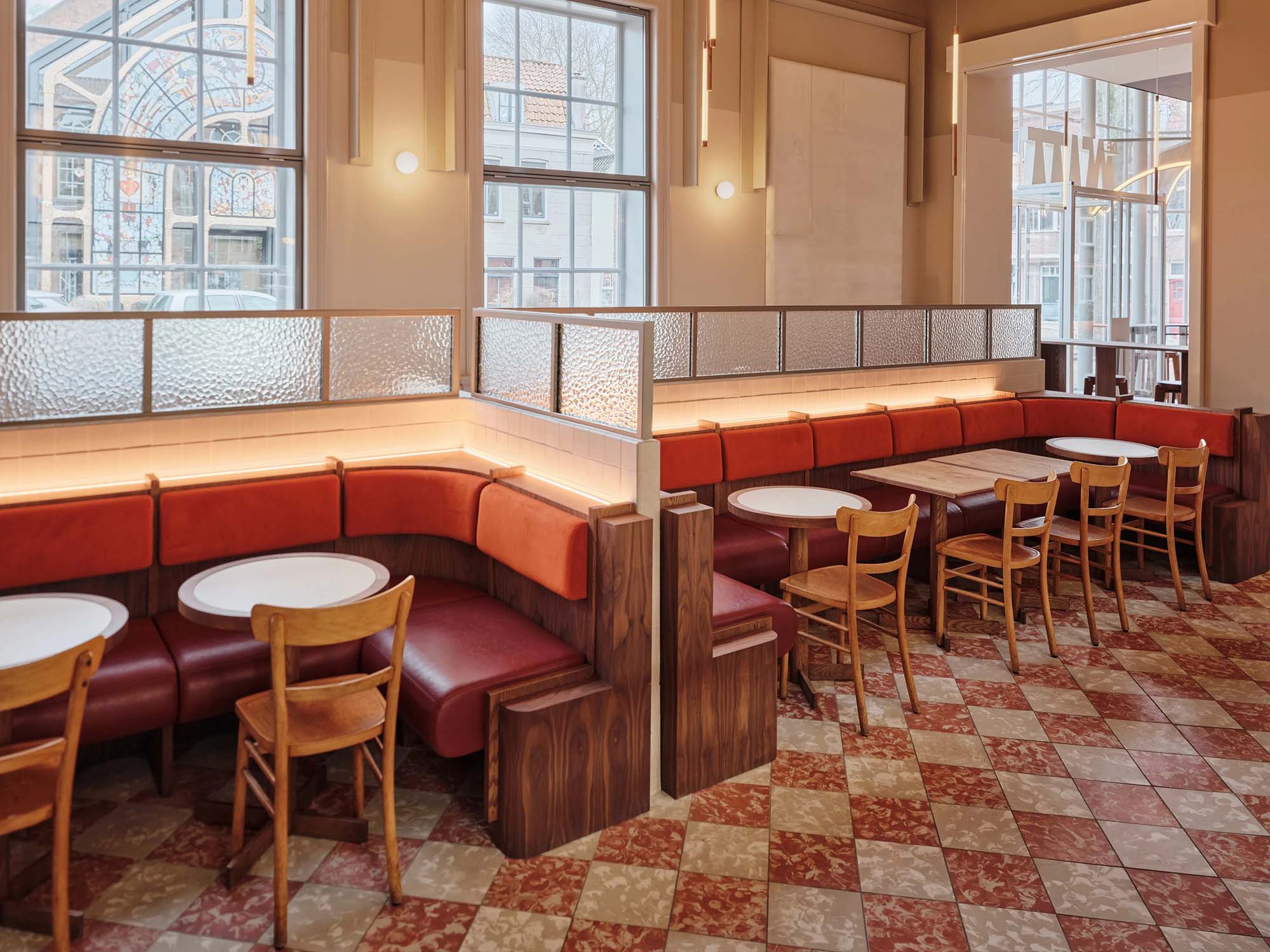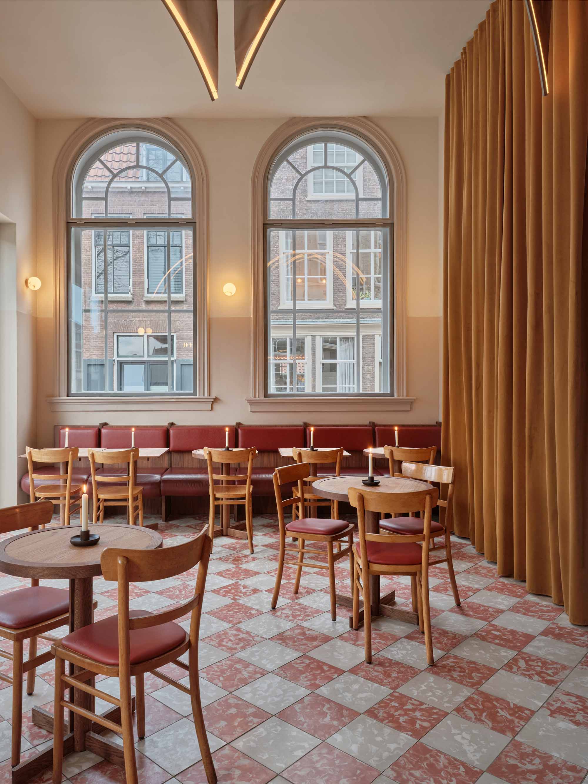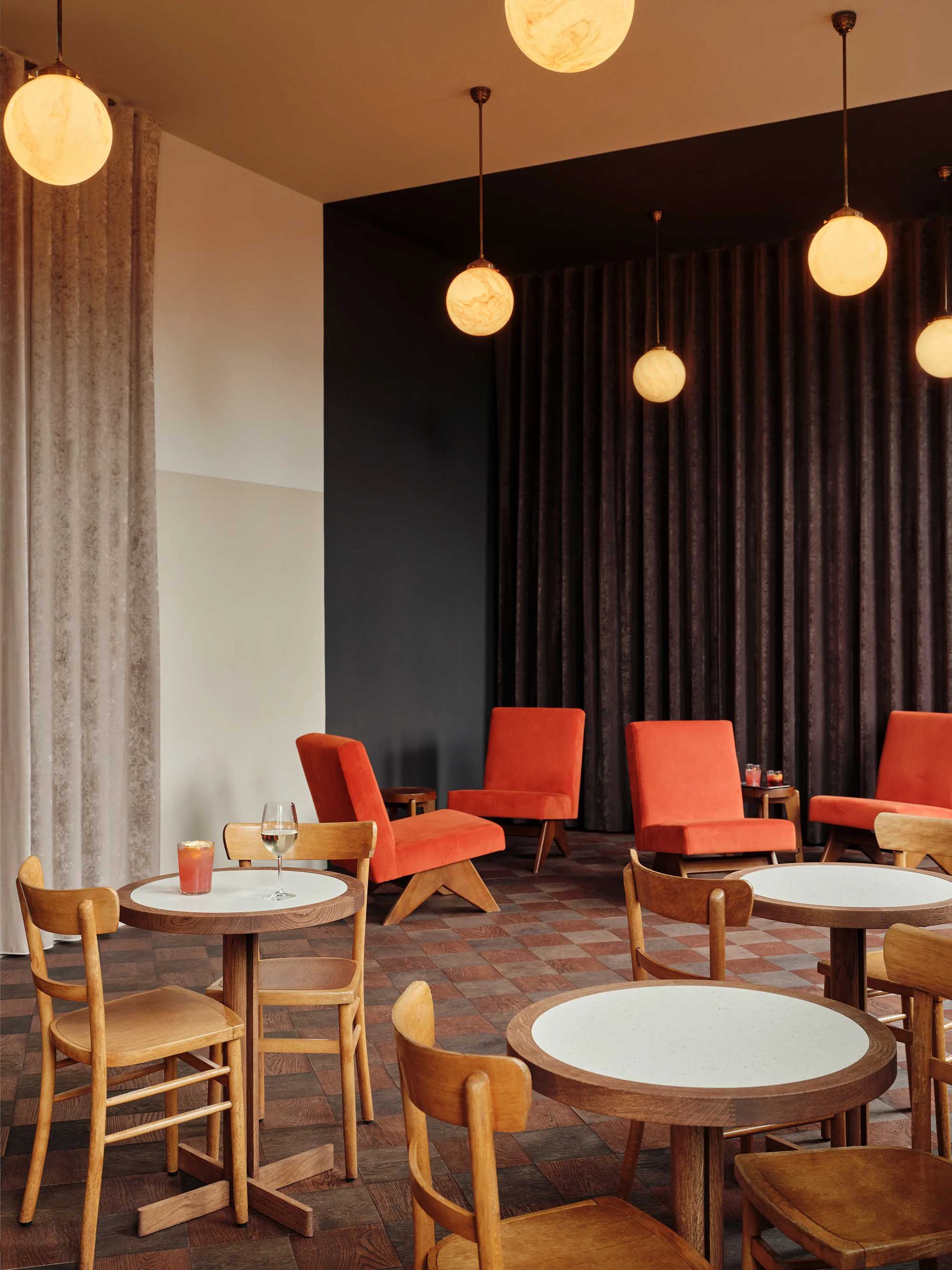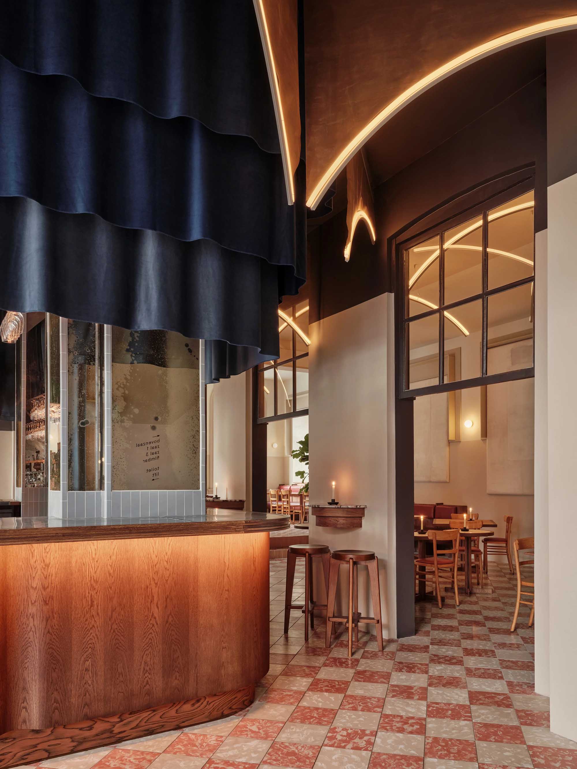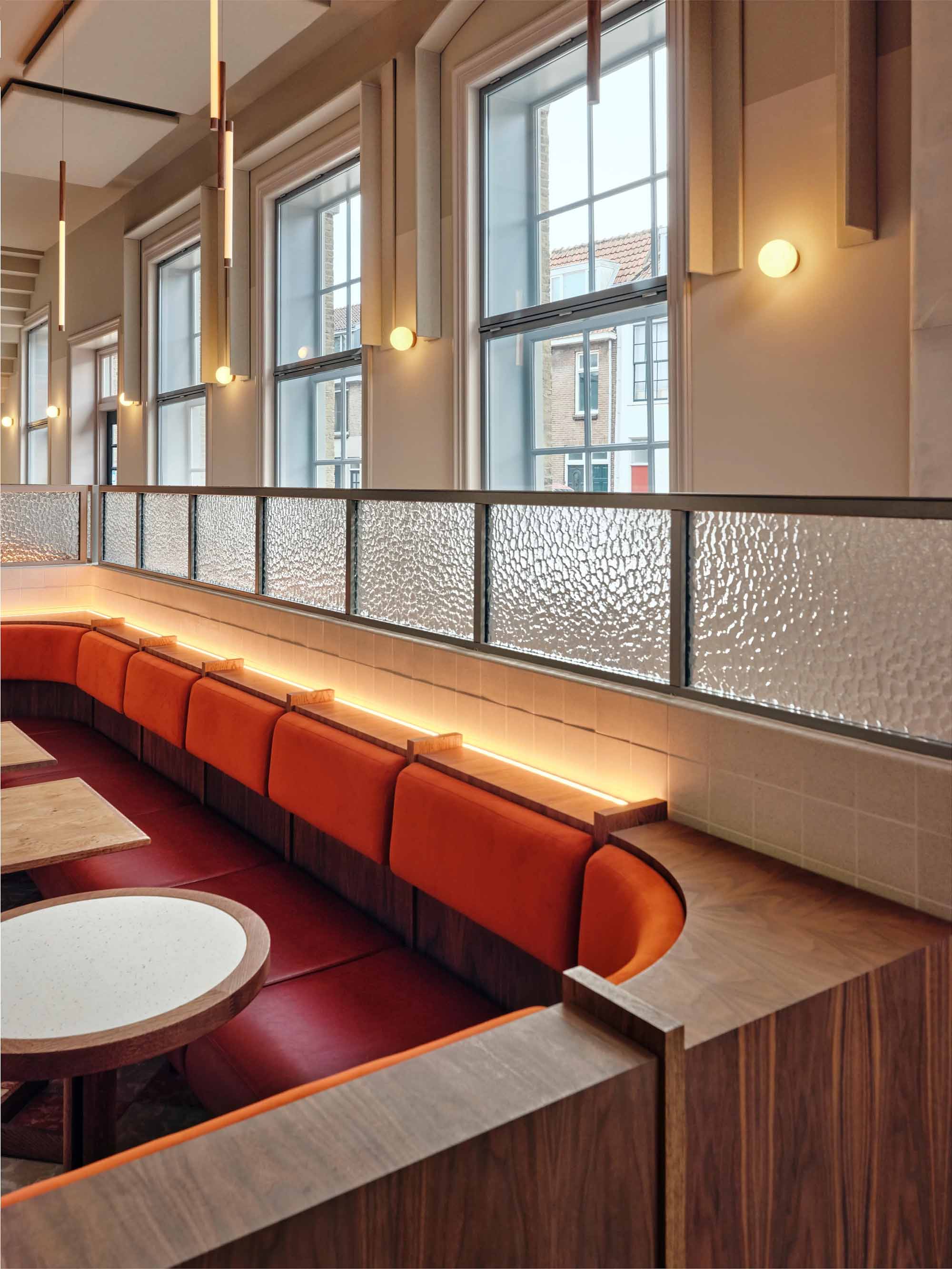 设计师巧妙地将空间方向调整为面向广场,让城市融入其中。主酒馆内部设有开放式厨房和朱红色的长凳,为食客提供观看食物制作的视角。同时,定制的灯具和家具设计灵感来源于建筑过去作为学校的时代,体现了对历史的尊重与传承。整个空间既有历史的厚重感,又不失现代与时尚的气息。