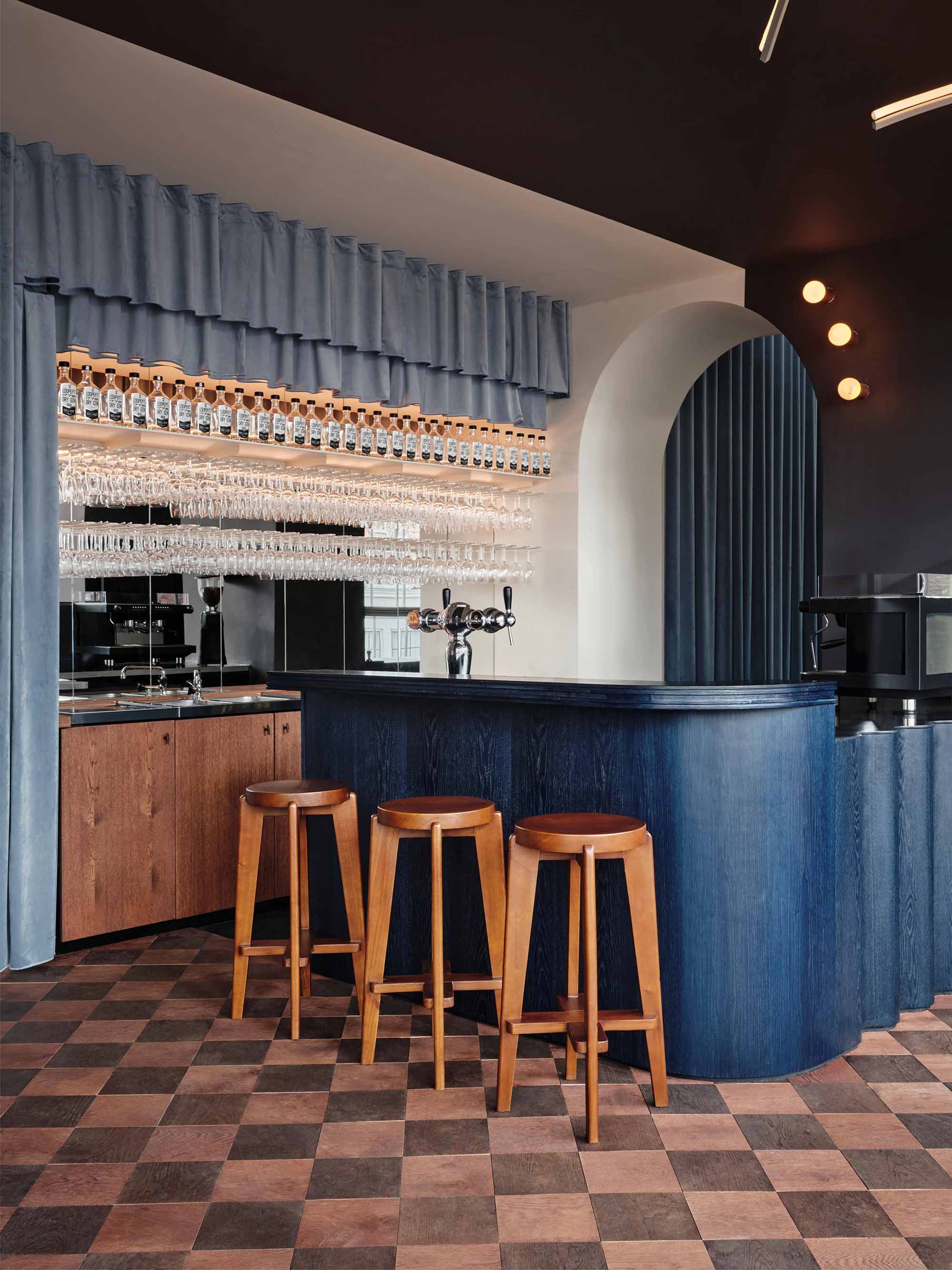 底层的咖啡馆和餐厅经过彻底改造,成为一个开放的啤酒馆,拥有主区域、三个小区域和一个酒吧台,所有区域都通过清晰的视线相互连接,让光线充分洒入。