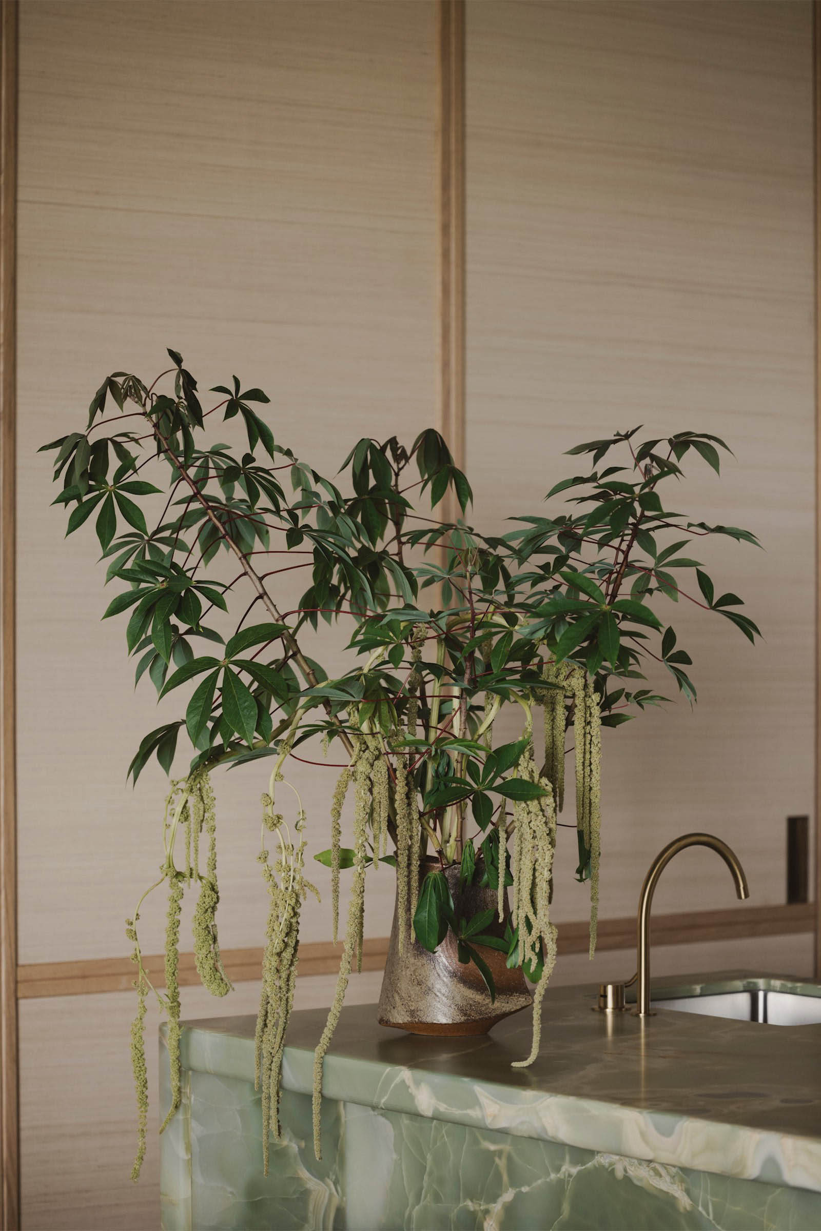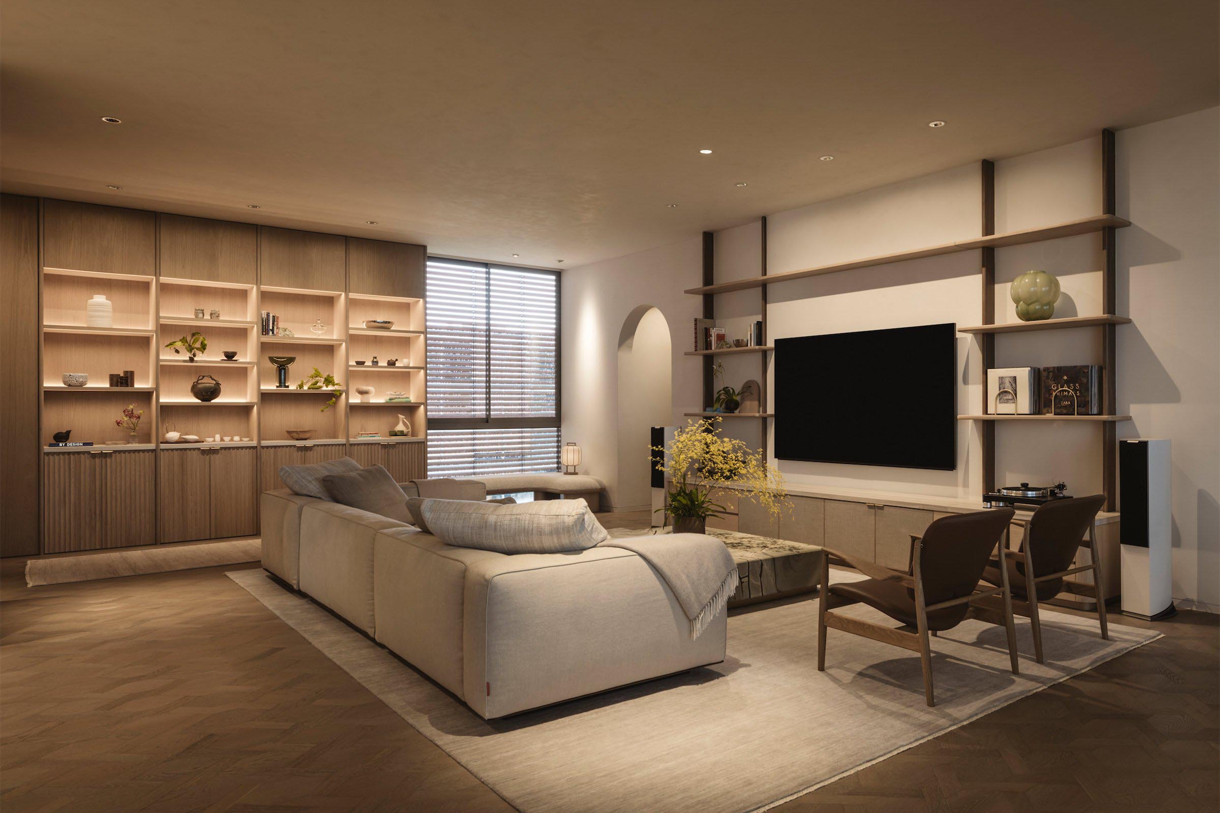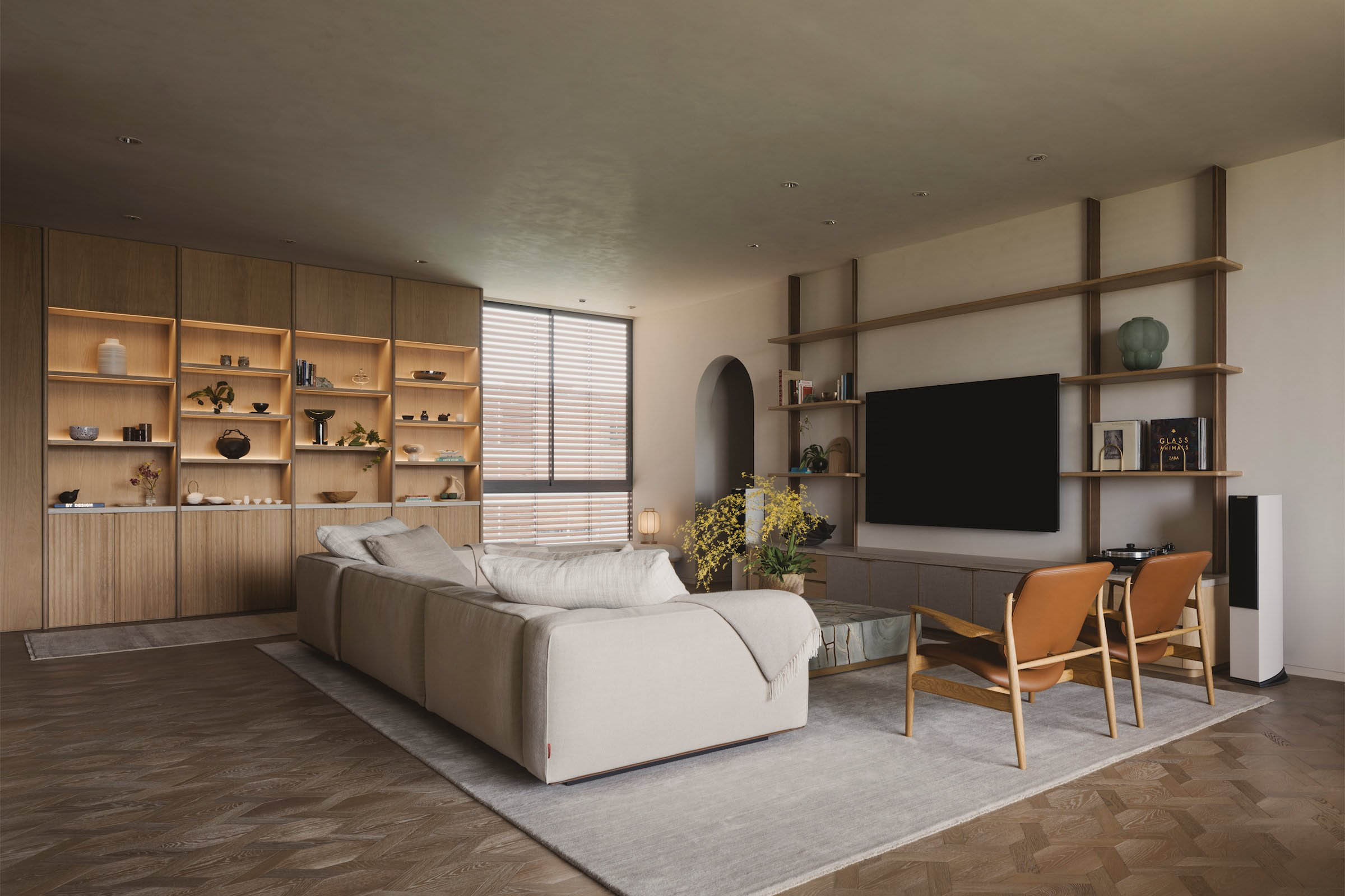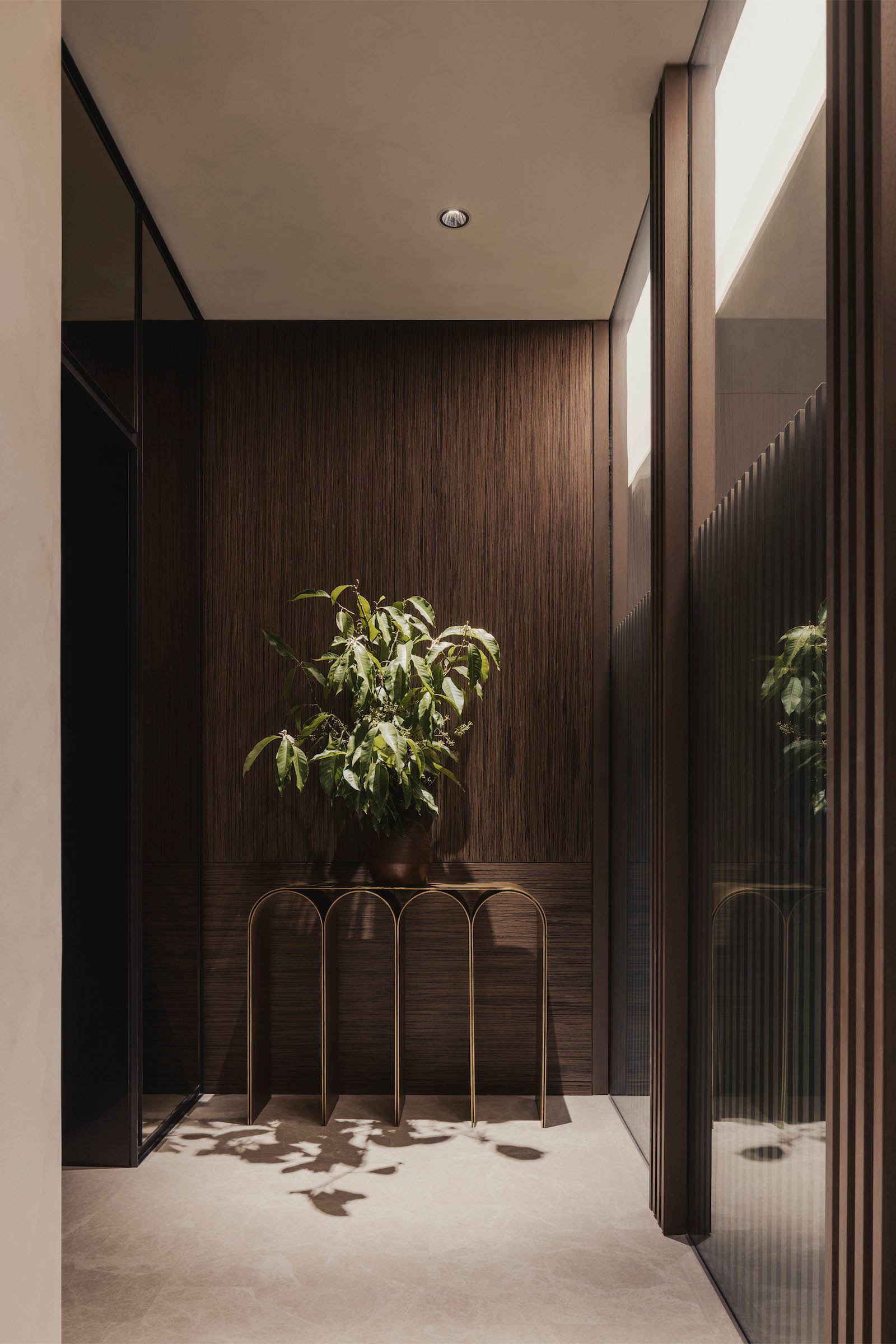 新加坡Takenouchi Webb工作室,由马克·韦伯(Marc Webb)与竹内直子(Naoko Takenouchi)夫妇共营,以精湛材料运用见长,本次案例为他们的家。两人钟情于各自爱好,马克爱潜水与制披萨,竹内则痴迷烹饪与音乐。其设计中,原始饰面与石灰石膏相映成趣,手工质感显著。拱形与曲线柔化硬边,定制金属架与扇形墙承袭此风。开放式起居用餐区巧妙分隔,家具陈设独具匠心。厨房延伸至起居区,绿色玛瑙柜台集休闲与专业于一体。阳台工作台专为披萨制作设计,配备齐全。品牌家具与灯饰增添家居轻松个性。