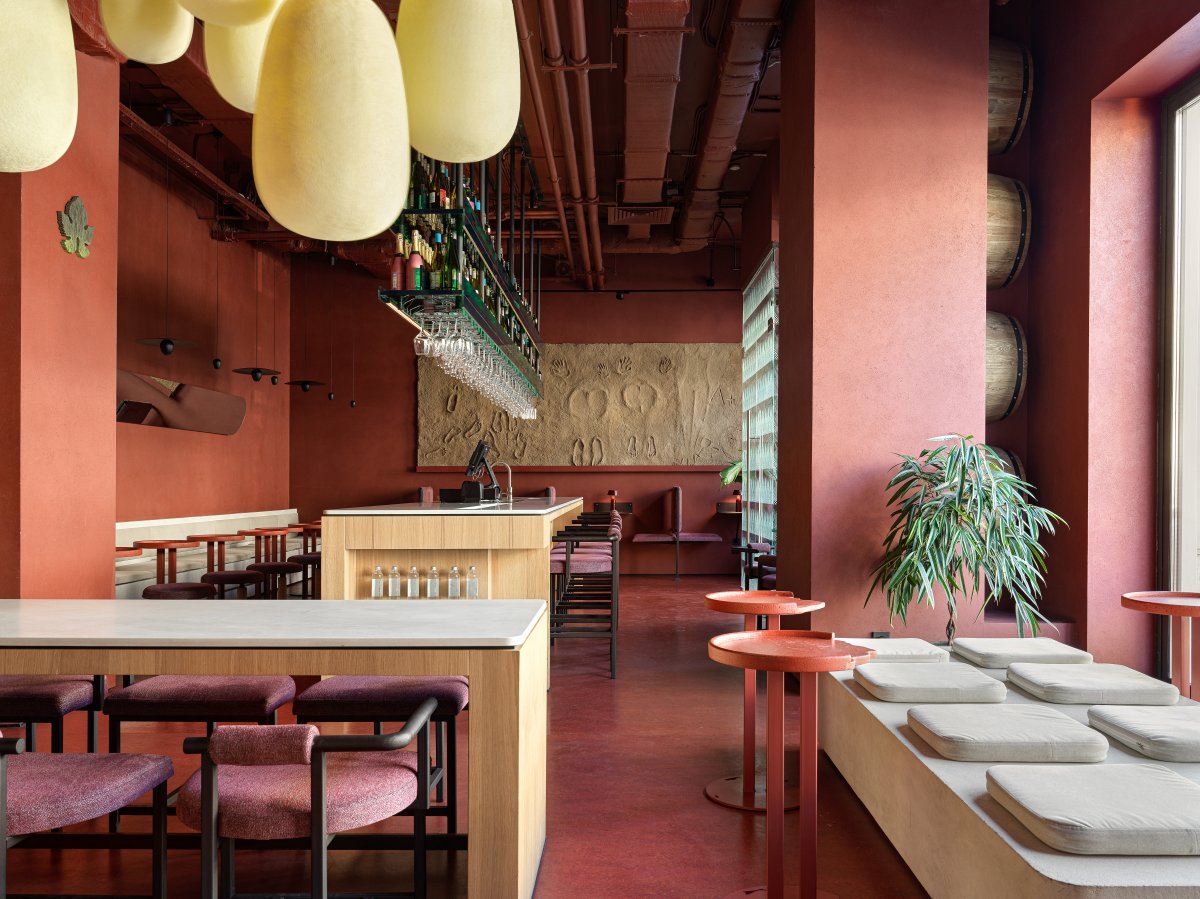 For a Glass 葡萄酒吧,不仅承载着品鉴佳酿的功能,更是营造了一处日常生活的惬意港湾,力图唤醒人们心中那份温情、闲适与亲密的情感连接。在空间设计上,设计师矢志诠释酿酒这门悠久艺术的精神内核,确保每一滴醇酿流淌出饱含热情与匠心的独特故事。借助富有亲和力的视觉表达与情感共通点,设计师引领每位顾客步入一场感官盛宴,共享品酒与友谊交织的纯粹欢乐。