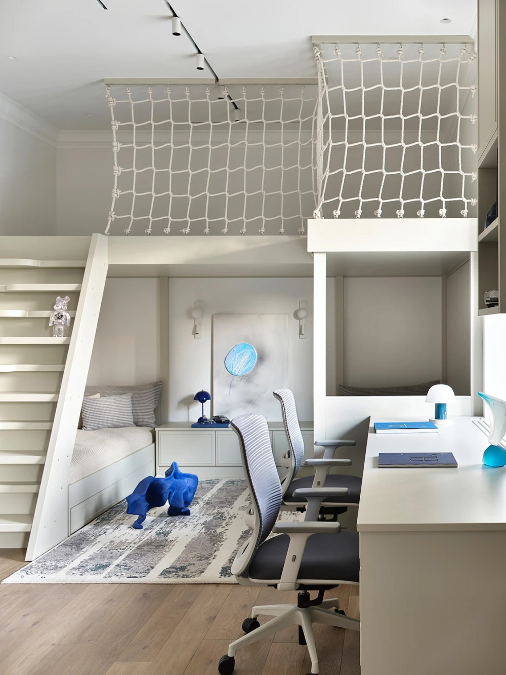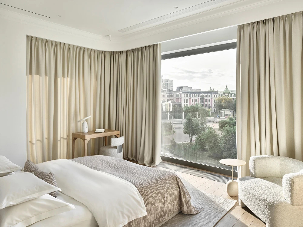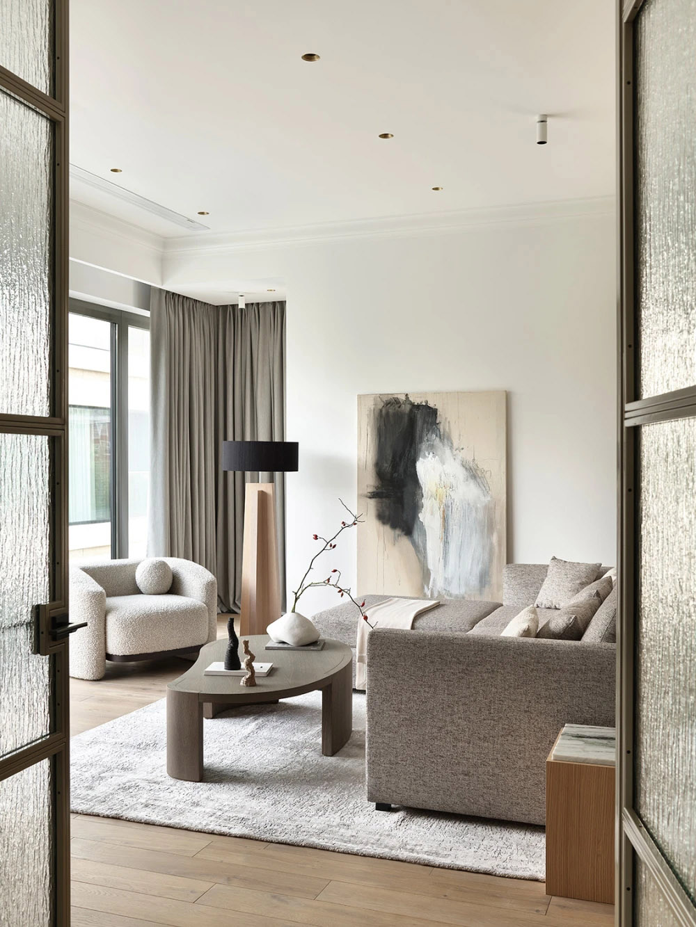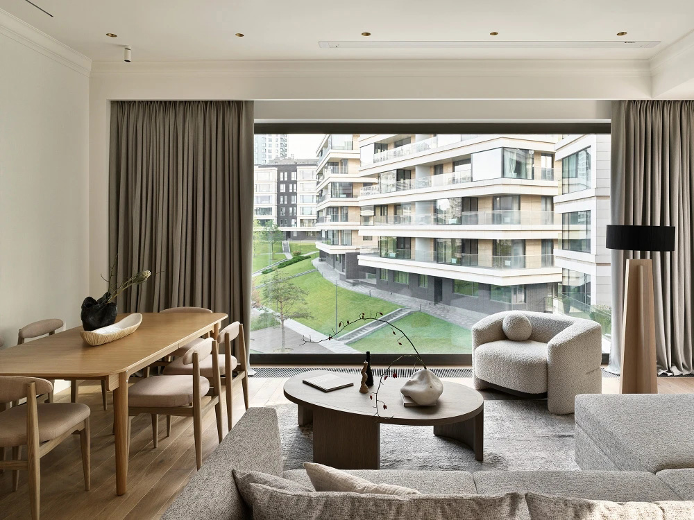 面对下方餐厅带来的顾虑,团队不仅优化公寓通风系统确保无异味侵扰,还增强双方隔音,确保居住静谧。布局上大胆调整,厨房与主卧对调,使高频使用的客厅直面绿意,提升心理舒适度,而卧室则隔音升级,保障优质睡眠,巧妙平衡都市生活与自然向往。