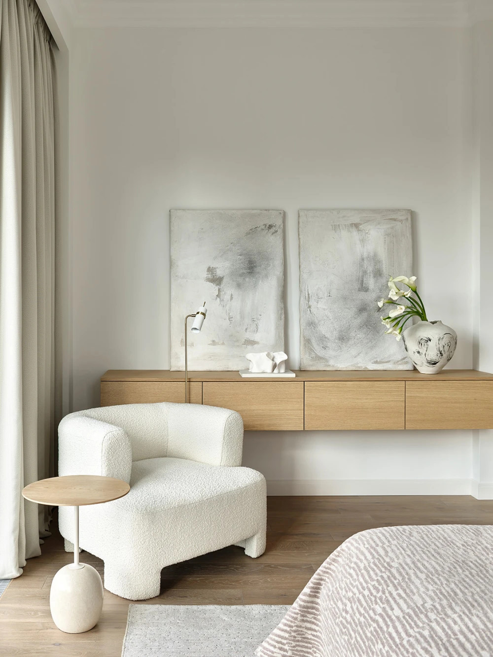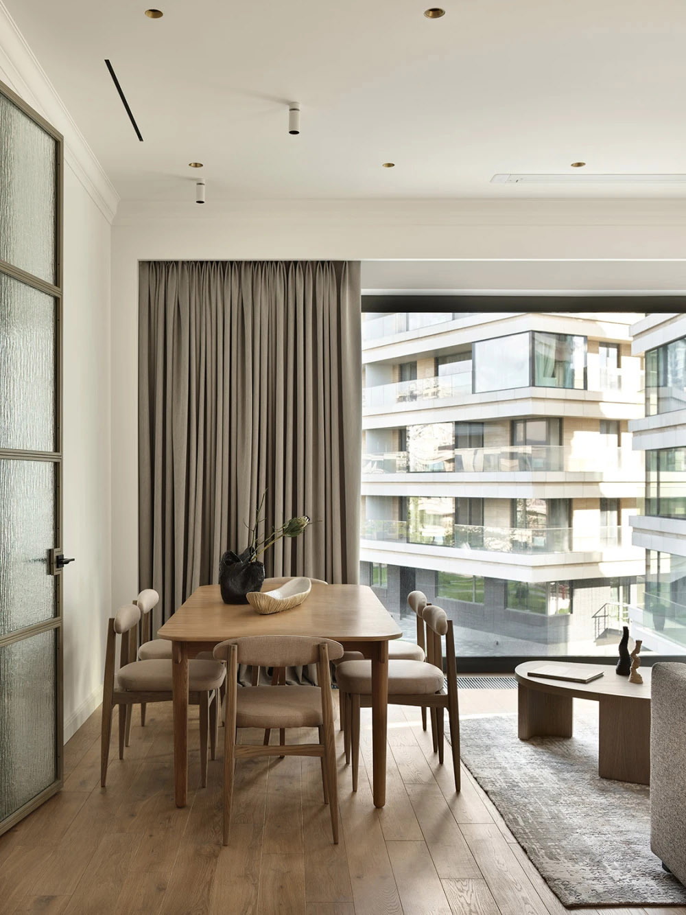 建筑师Nikita Bondar为富有创意的家庭设计了简约明亮的200㎡大平层公寓,项目位于莫斯科西部。力求都市节奏与自然宁静的和谐。迎接第四位家庭成员,新居更宽敞,位处明斯卡亚街,视野开阔,内部营造乡村别墅氛围,通过优化空气质量和加湿系统实现。