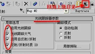 回到上级目录,展开“贴图”卷展栏,单击“反射” 后的“none”按钮,在弹出的“材质/贴图浏览器”中选择“新建”单选框,在右边列表中双击“光线跟踪”贴图。回到上级目录,将“反射”后面的“数量”值改为5。