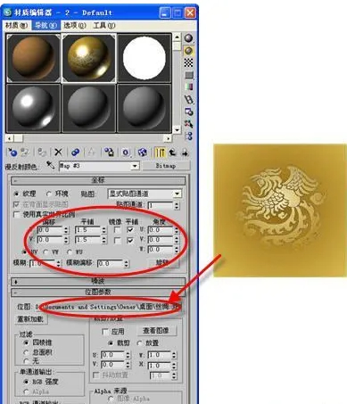点击工具栏上的“材质编辑器”按钮,打开属性窗口选择第一个样本球,修改“高亮级别”值使其变得大一些。