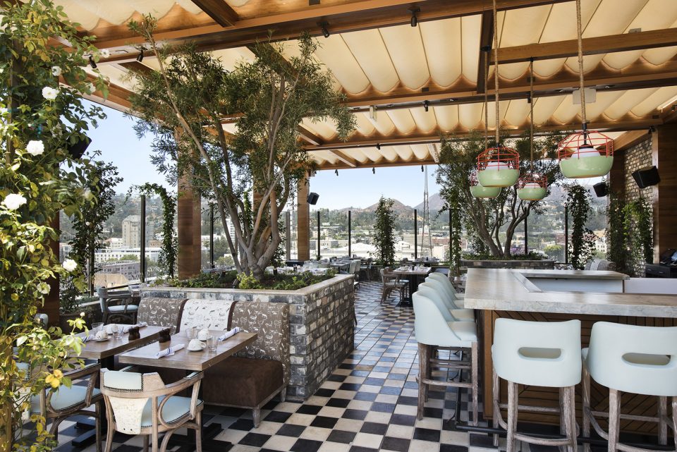TAO集团的酒廊位于酒店顶层,拥有11000平方英尺的户外酒吧、休息区和带有伸缩雨棚的餐厅。在木头和石头打造的酒吧区可以看到开阔的好莱坞和城市风光。