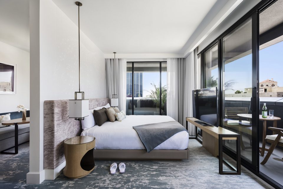 受到John Lautner, Richard Neutra 等早期建筑师的住宅设计影响,设计师为酒店大堂、客房及屋顶花园定制了一个当代框架,与上世纪中期的现代主义相平衡。在当代风格中糅合花园式的元素和毛绒质感,从而打造时尚与奢华的完美融合。