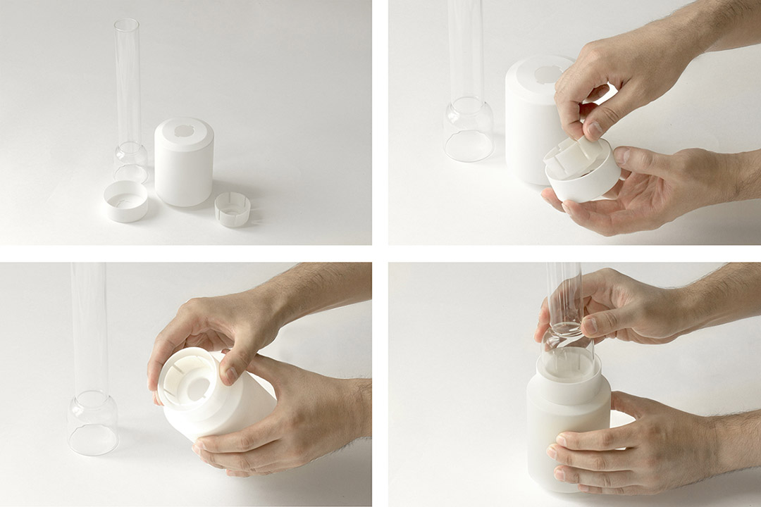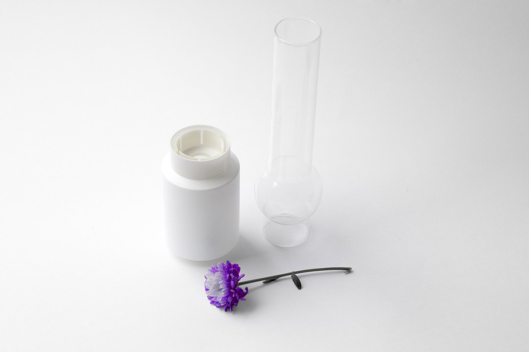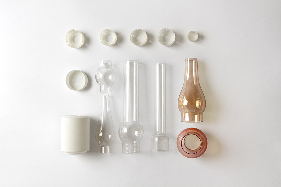 Experimenta花瓶系列对传统煤油灯赋予了新的含义。该系列包含一个盛水圆柱、来自旧煤油灯的玻璃体、一个圆环及固定玻璃体和圆柱的若干零件。