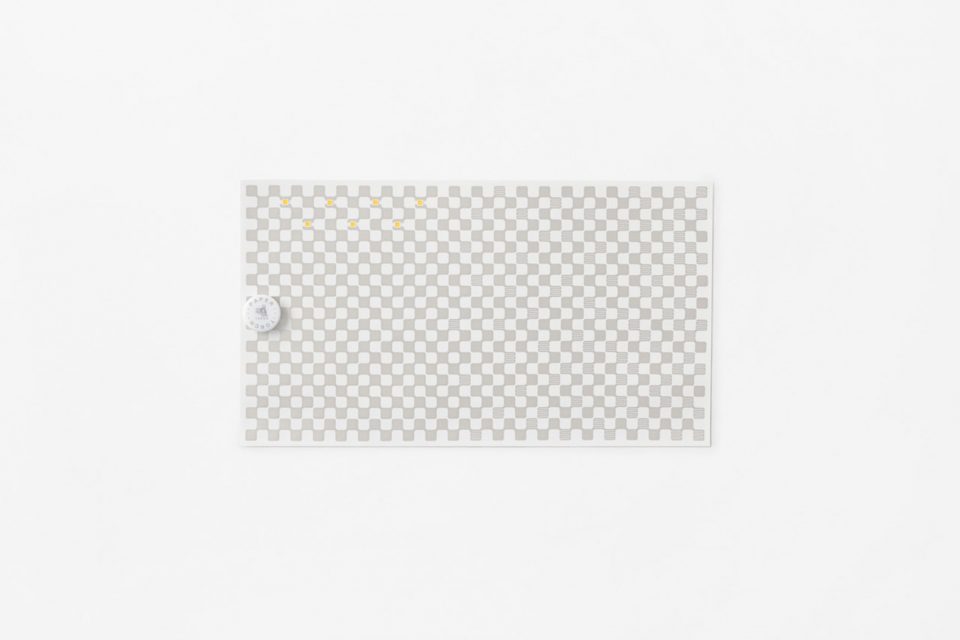 这款手电筒运用了AgIC的技术,可通过银粒子墨水将电路板打印在纸张、纸张两面的电路以方格的形式被打印出来,两个按钮和七个LED灯由导电胶粘贴在纸上。根据不同的卷曲力度,LED灯的电路路径长度会发生变化,从而改变电阻,调节光的亮度。电路路径越长,电阻就越大,反之亦然。因此当卷纸的力度较轻时,灯光就比较暗,卷得较紧时,灯光则变亮。此外,基于LED灯在接触纸张时会改变颜色的特性,当LED灯所在的一面朝上时,手电筒会发出温暖的橙色灯光,而向反面卷曲的话,则会发出白色灯光。这样一来,使用者就可以享受到两种色温的灯光。