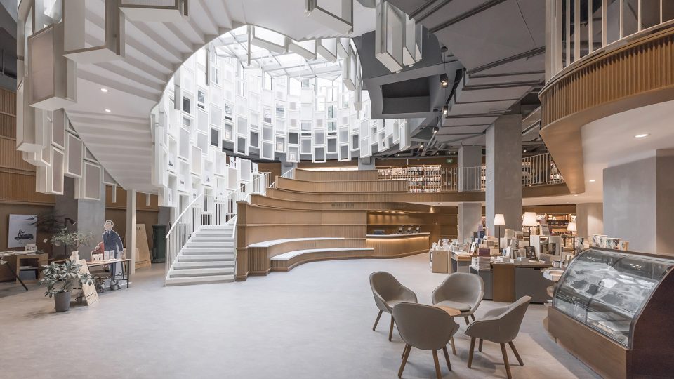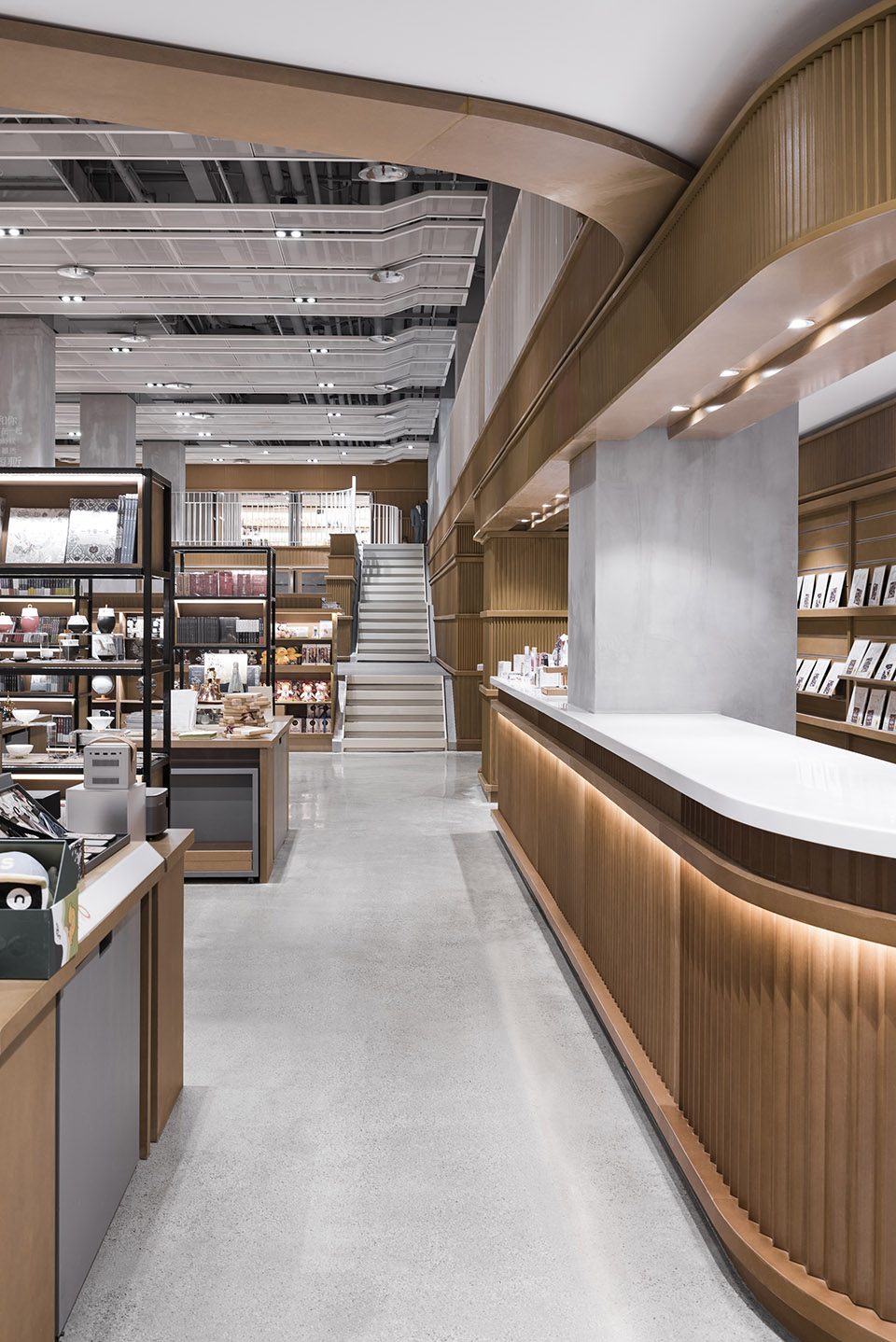 为宁波的筑蹊生活书店设计了流动且富有变化的空间,其有机的几何与循环的路径作为具有推动力的“运输工具”,在触发人们好奇心的同时,将全新的生活方式带入公共空间和商业场景之中。建筑师与委托方自项目初期便确立的共同目标是,设计一个供人们闲逛和消遣的场所,将阅读作为核心功能,并为之补充一系列丰富多样的活动空间,使顾客能够就座、阅读、学习、参与工作坊以及现场活动;带来超越传统售书模式的全新体验,使该项目成为宁波及其周边地区的全新生活目的地。