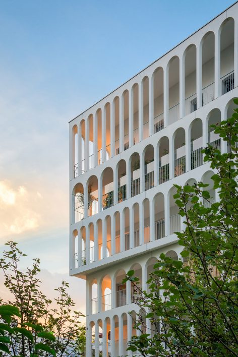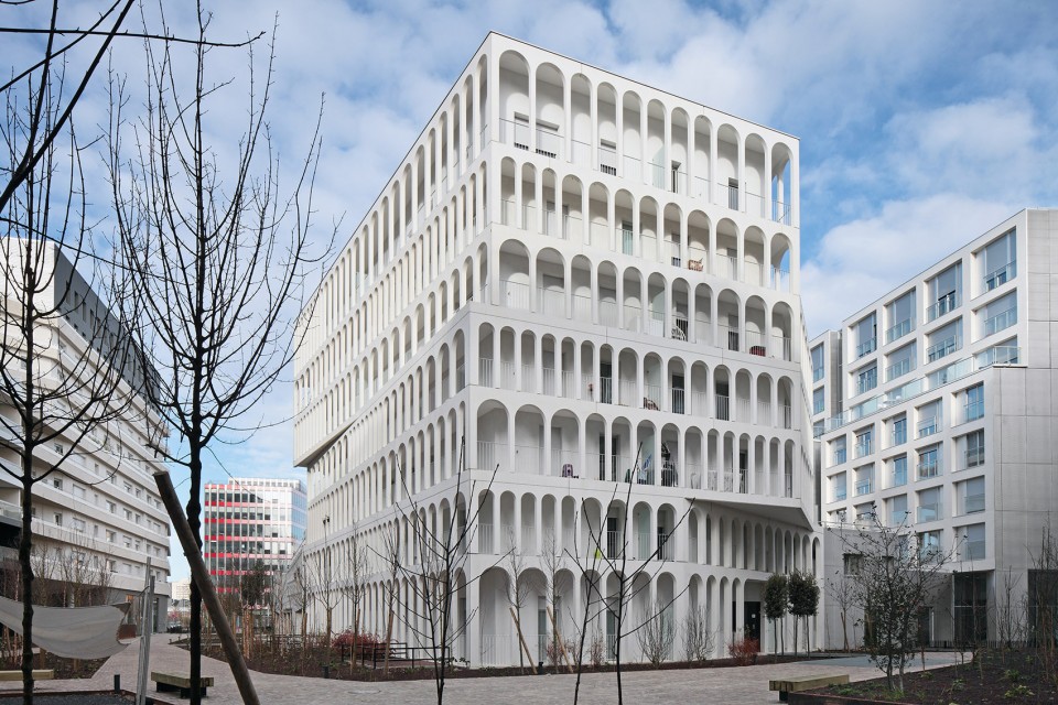 位于场地中央、被其余6座建筑所环绕的B5 Boulogne自然成为了视觉的中心和焦点所在。连续的柱廊通透而轻盈,模糊了室内外空间的界限,为居民带来宽敞的活动空间,也形成了良好的视觉观赏效果,让建筑无愧于其核心位置。
