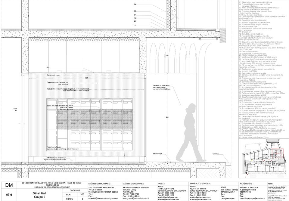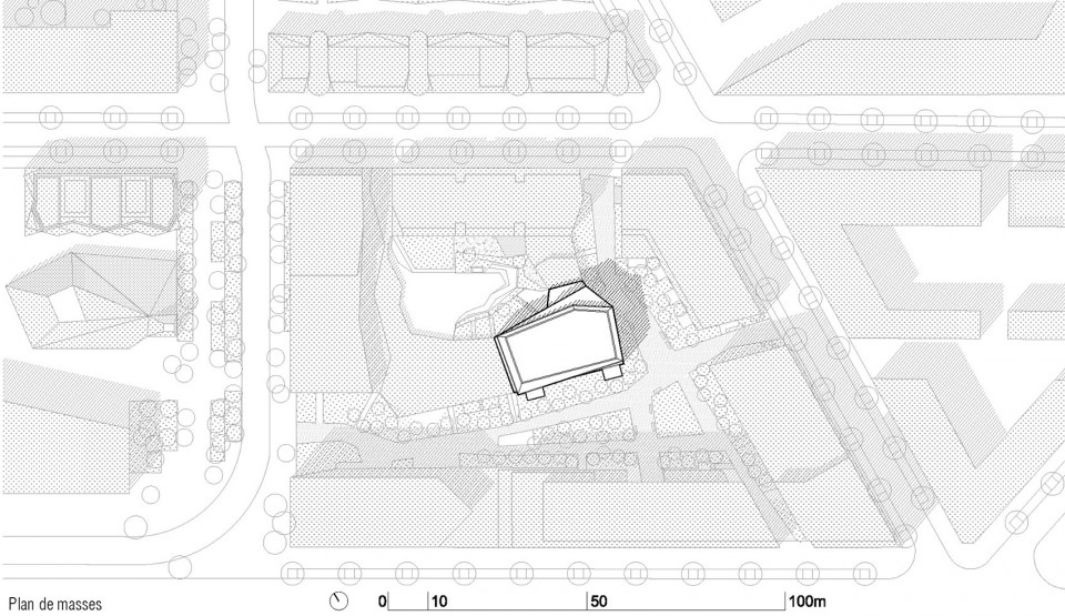 Seguin Rives de Seine位于塞纳河畔,毗邻巴黎的西南角,曾经是雷诺工厂的所在地。随着工厂的搬迁,74公顷城市用地也随之解放,成为了新一轮城市发展的重点区域。其中一片名为“Macrolot B5”的地块被进一步划分成7部分,由负责委员会邀请的七位建筑师分别设计,而本项目B5 Boulogne正是其中之一。