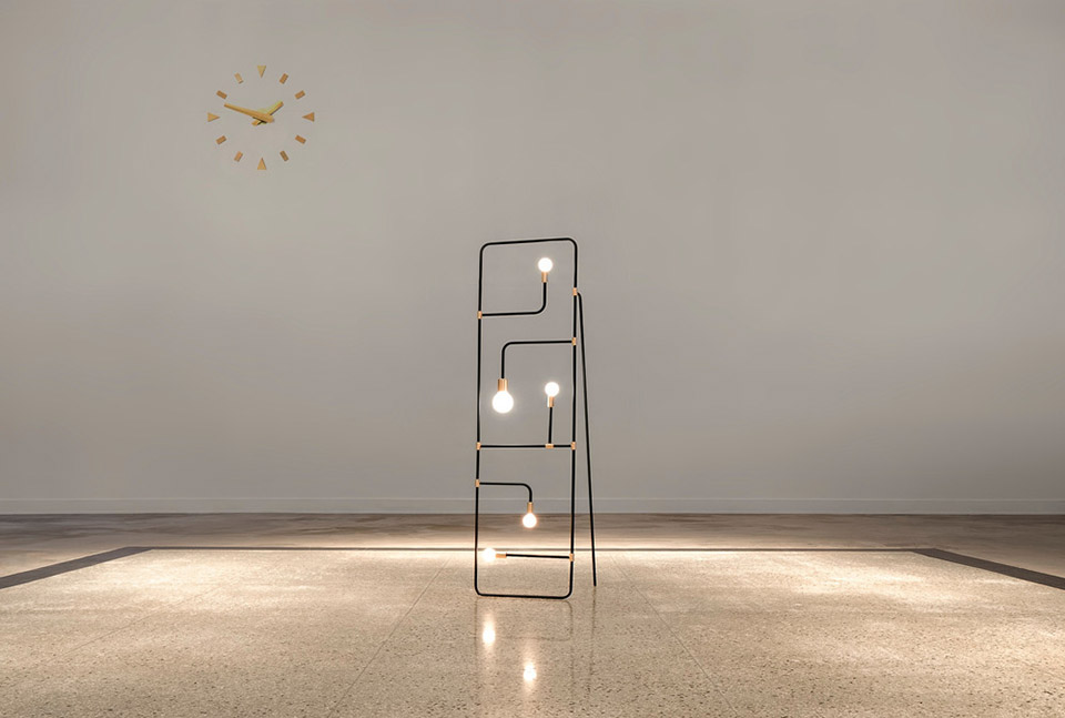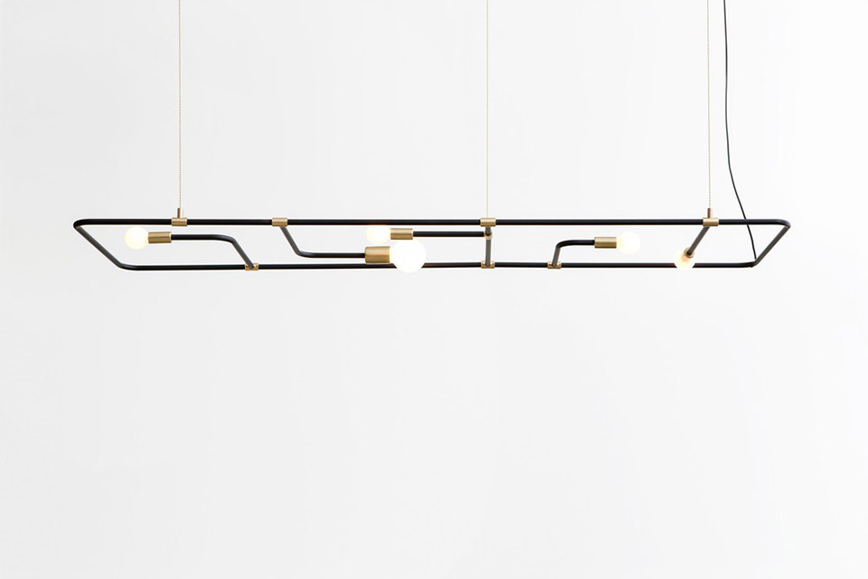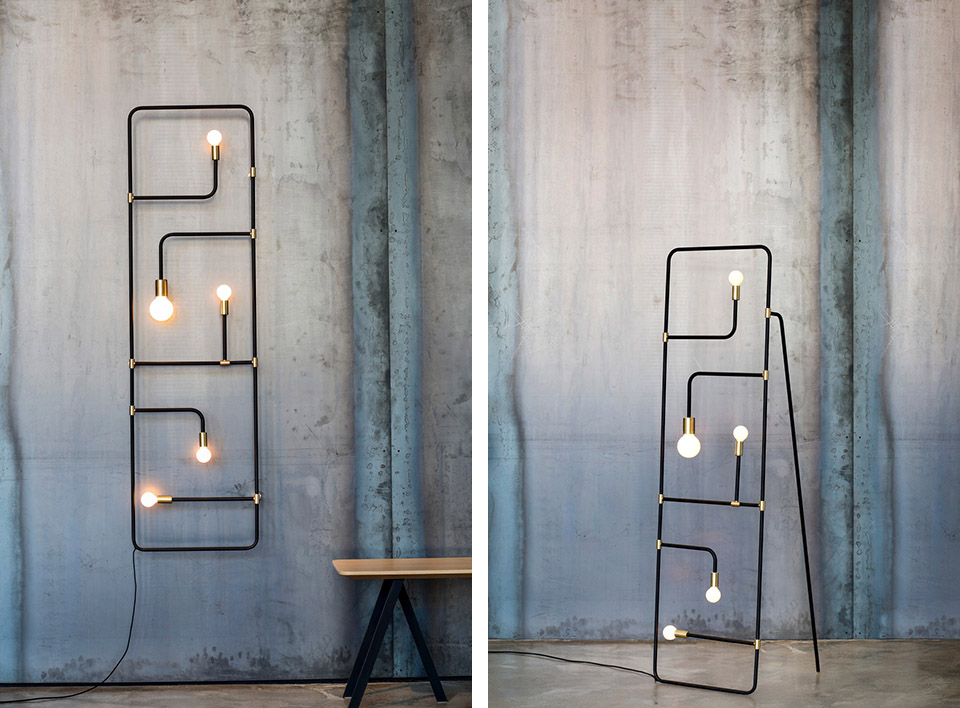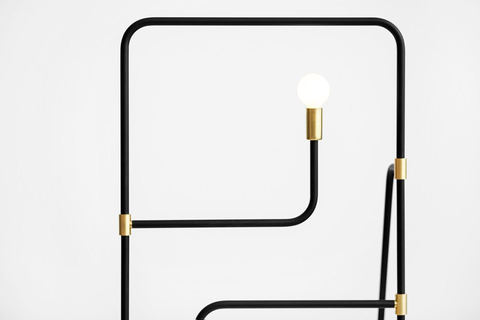 来自Lambert & Fils (v2com)的分享。一款形式美感来源于中国传统屏风的灯具。有挂立款和站立款。黑钢作为框架,亮铜构件作为连接关节,圆形磨砂灯泡点亮宛若金球。工业感十足。