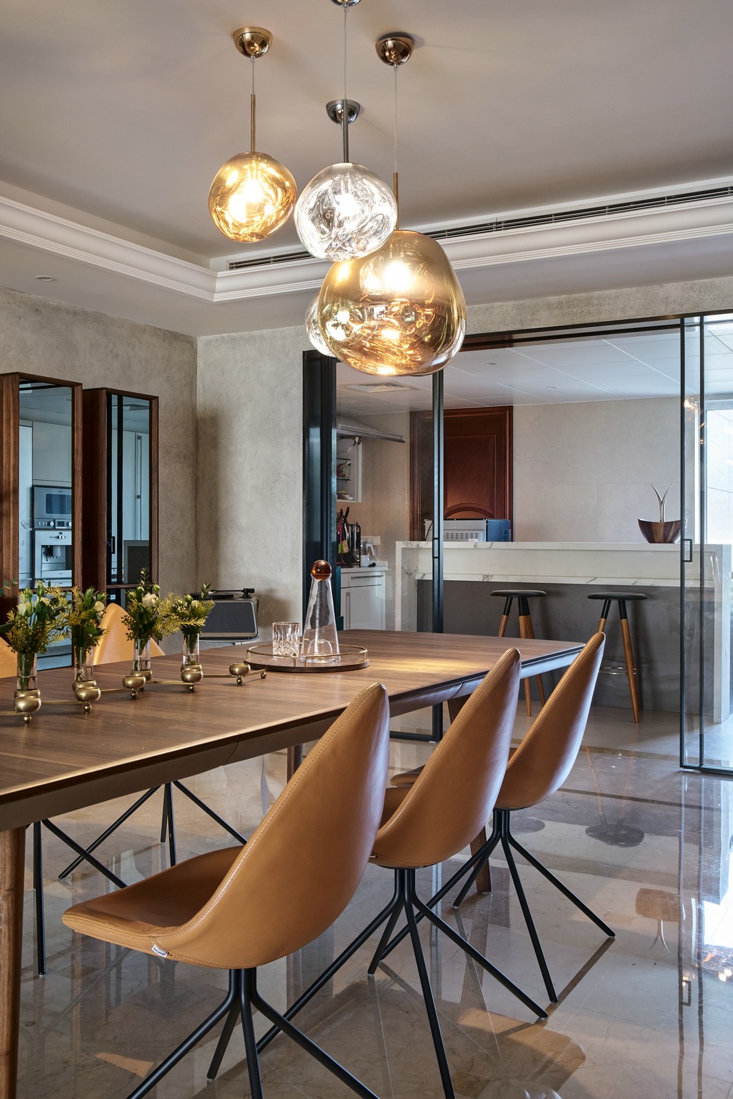 如果想为家里营造一种精致典雅又不乏时髦细节的氛围,那么你必须具备这样一种能力:能鉴别和发挥每一个物件自身的美,创造一种微妙的和谐感,而不是随意地将它们拼凑在一起。在这间位于杭州的公寓里,可以给大家带来这种久违的和谐:整个公寓面积为300多平方米,装饰材质主要以温润的木材、未来感的金属和摩登的大理石为主。在空间里,出自欧洲高端品牌的家具与极具特色的装饰单品相得益彰,尽显业主的独特品味。