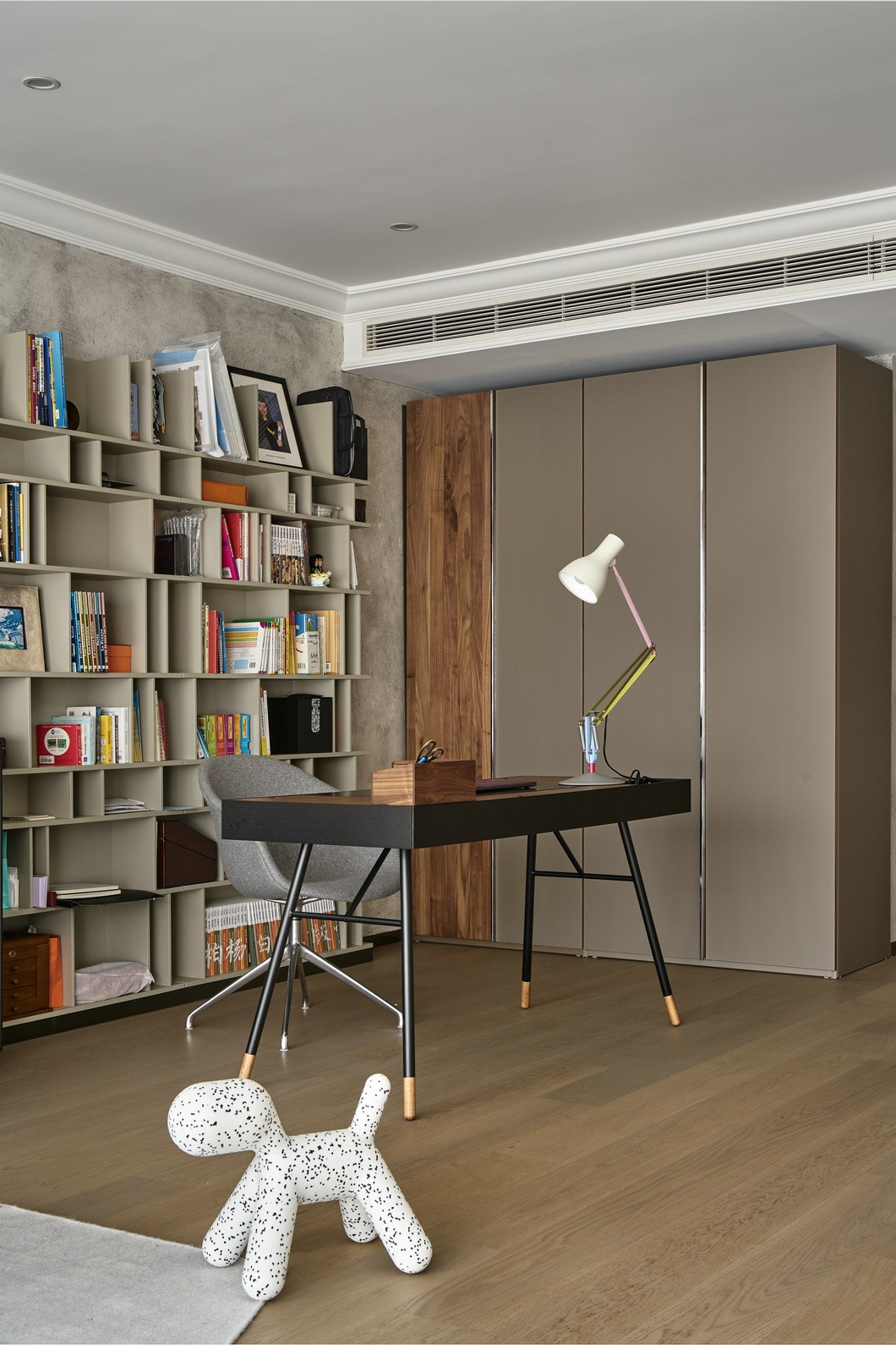 书桌和书柜来自于BoConcept,衣柜是Schelbach-home,地上摆放着可爱的MAGIS Puppy。