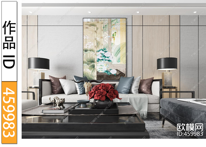 刘卫军新中式沙发组合3D模型 ID:459983