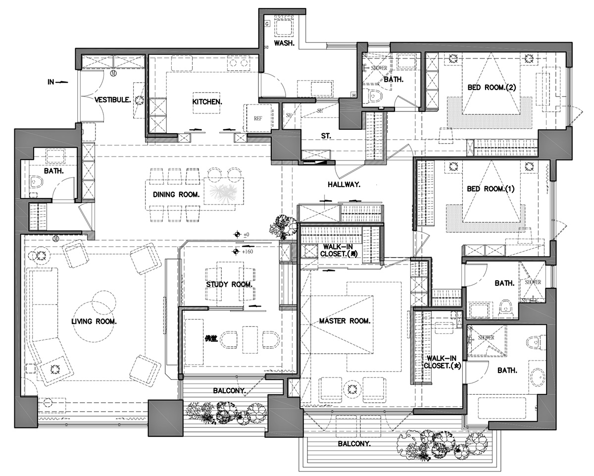 < 屋主需求 >1. 注重居家健康安全,装修时要做好除甲醛步骤2. 希望依照生活习惯量身规划各空间的体贴设计,住起来舒适好整理3. 有佛堂需求,两处露台空间要规划绿化环境
