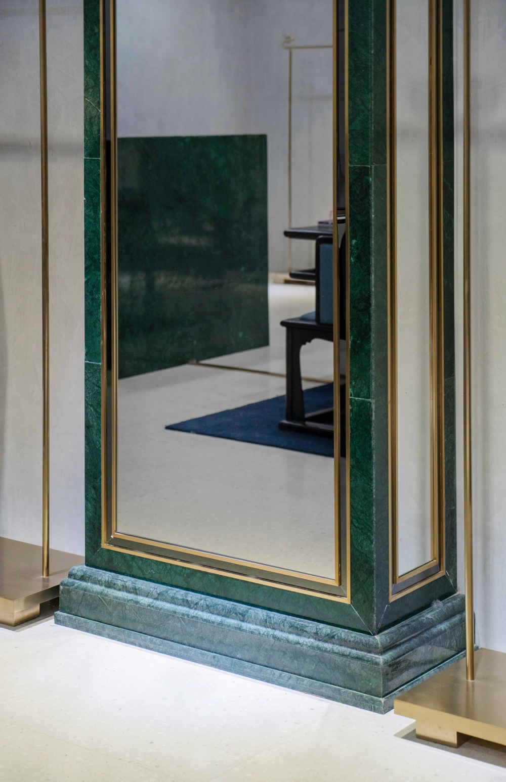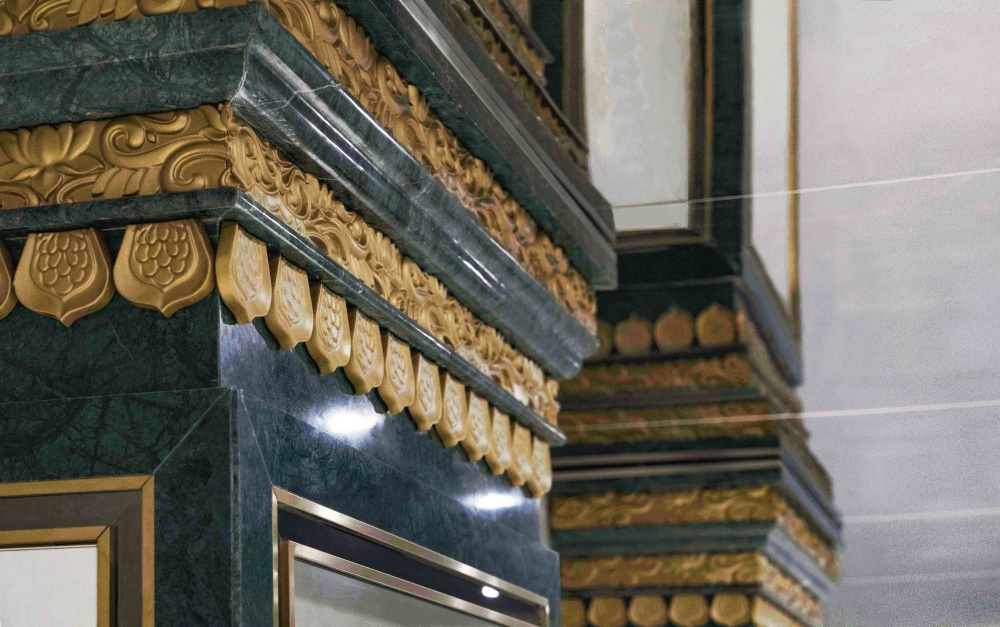 穿衣镜:采用了大理石基础的方柱,而又同时使用了传统中式的莲花纹样柱头。
