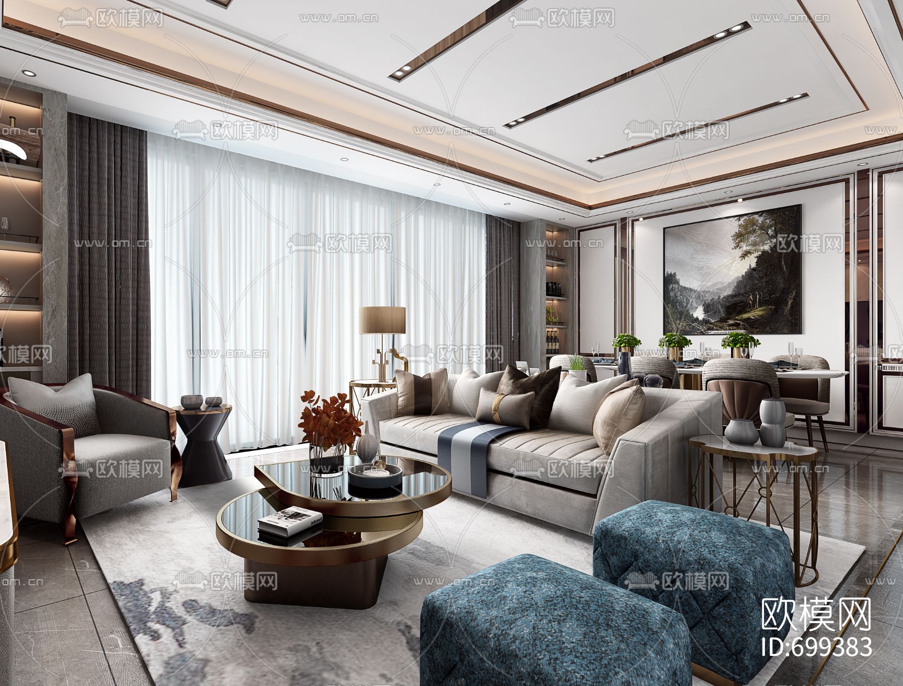 现代轻奢客厅3d模型 ID:700490