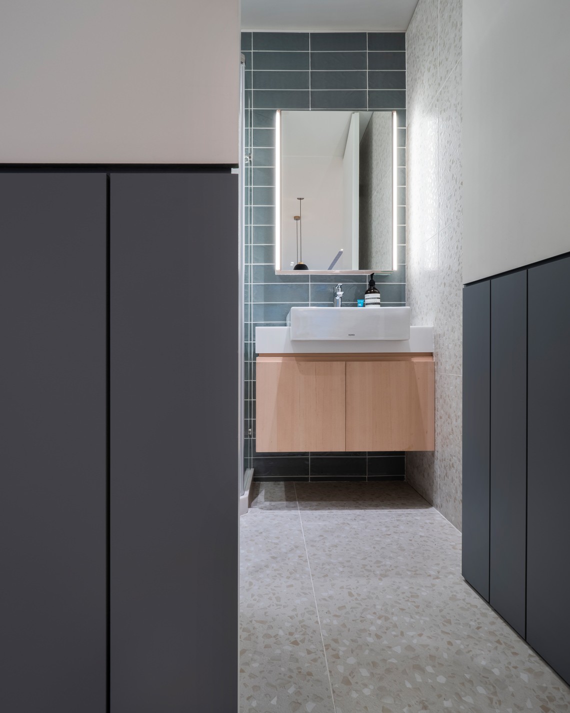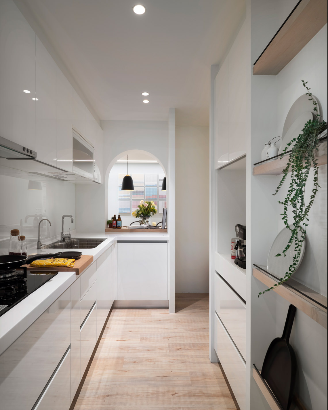 这个71m²,制式三房的样品空间,在不对原始格局做太多大变动的前提要求下,透过设计微调,打开原有封闭厨房,除了将用餐区形成生活焦点,更制造了家人间更多对话的机会。尺度拿捏上,游刃有余地摆进210公分餐桌与280公分沙发。视觉表现则以客层设定的年轻都会家庭为主调发展,整体清新略带文艺感,色彩也从公领域的中性色调、主卧以女主人为主的粉系主墙、甚至是门框上的着色,去丰富层次。另将主卧的洗手平台从卫浴中释出,不仅是因应建商销售族群喜好旅行、享受旅店式规划的特性,同时也创造了理想的动线与收纳。有效并放大每一个坪效的使用,带来更多的美好生活画面,样品,不只是样品,也能是真实。