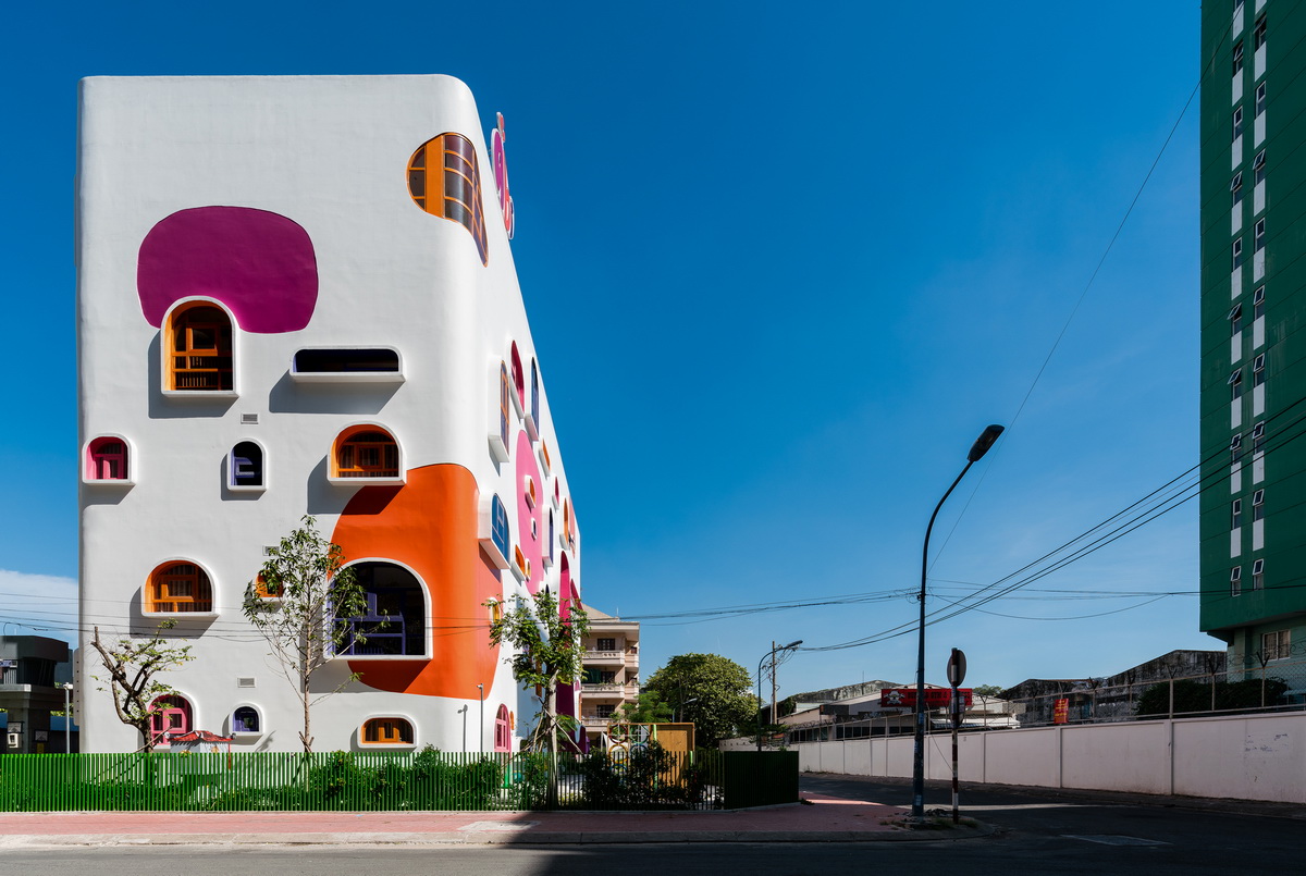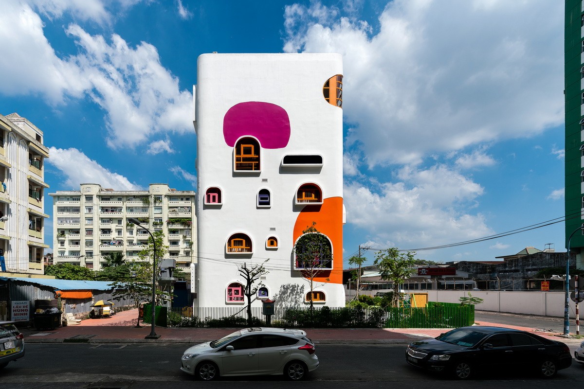TTC 西贡精英幼儿园位于西贡市西3区,这里紧靠市区火车站。这座新幼儿园是在原有建筑的基础上改建而成的。它被设计成一个简单纯粹的几何形状,以激发孩子们的好奇心,并让孩子们每天都能够与它互动。作为孩子们的“游戏”之家,该幼儿园建筑通过简单的造型与高宽窗户之间构成一定的比例关系,有趣地表现出了它的特征。