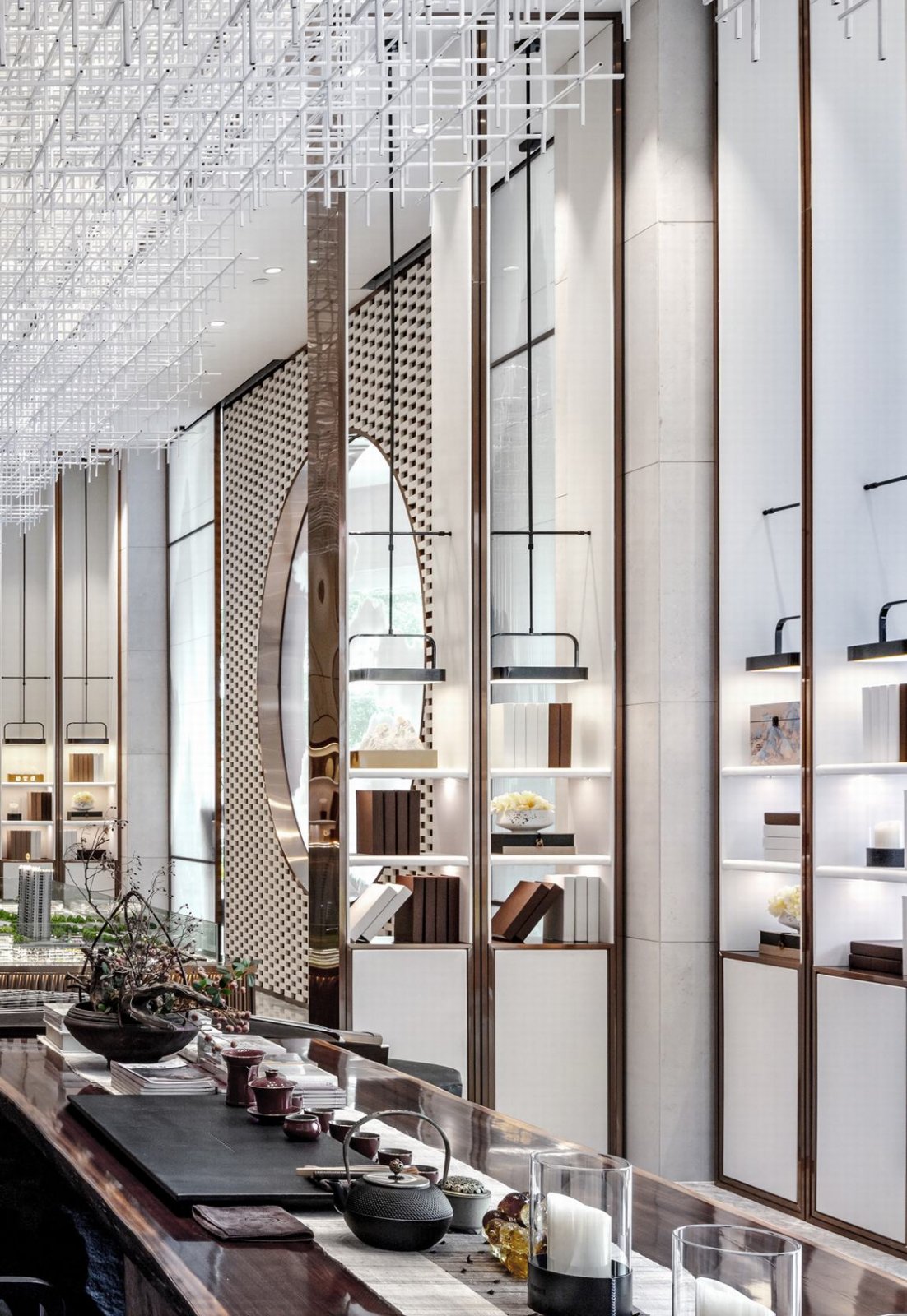 趣:走中获取,希望在每一个空间有不断惊喜的认识体验。将东方建筑园林所独有的文字的文学性和哲学性与建筑空间的结合的方式应用到室内空间。翼望能给于所有体验者关于中式顶级精致生活的文化价值认同和人生启迪。
