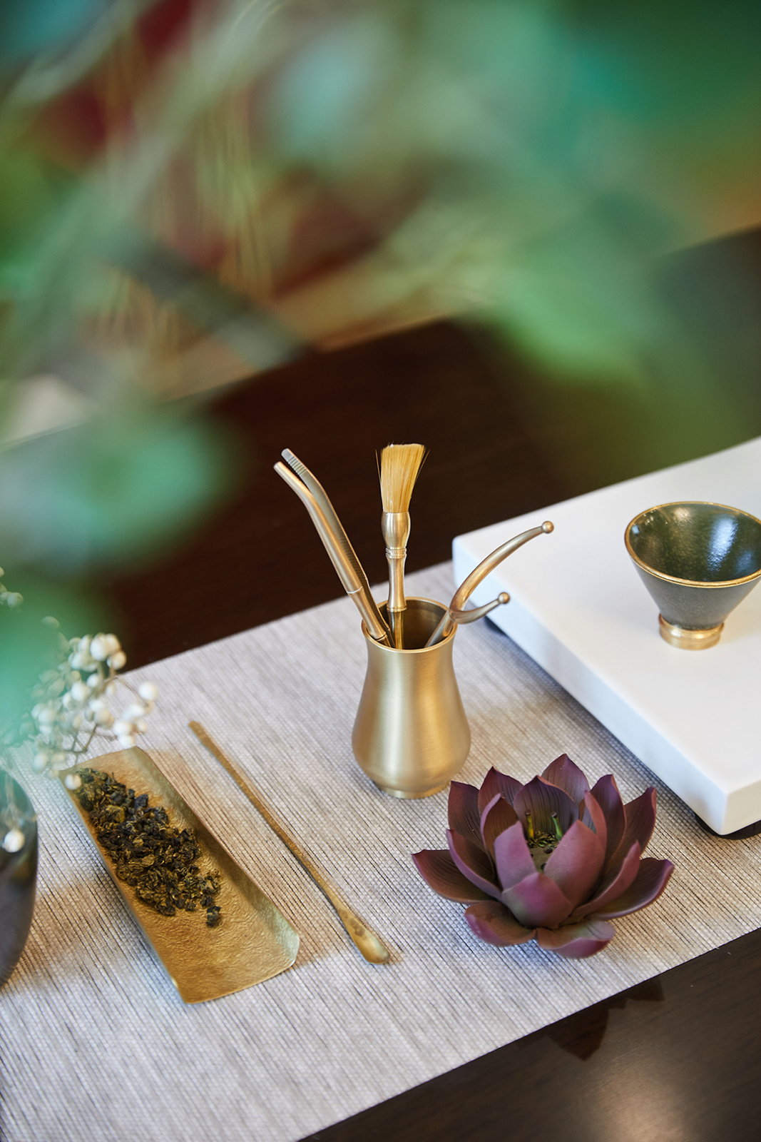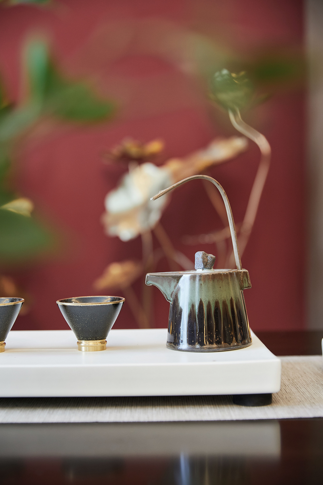 在这样的空间中,一樽石、一盏茶,云雾缭绕,金荷伫立,仿佛时间悄然静止,熏染的岁月,深深又浅浅,在心里、在路上与时光相聚。