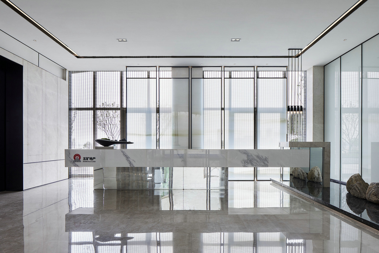 EMA轶美设计围绕武汉独有气质,为武汉五矿万镜水岸营销中心序写东方礼序风范,在设计主旋律上,遵循城市特点,提炼楚文化中的艺术美学形式,运用水、山、石、光等自然元素,设计了这样一处清闲中见新奇的恬静温雅之地。