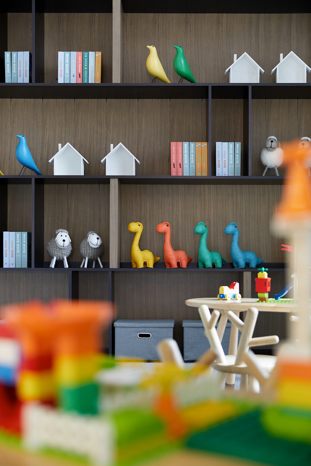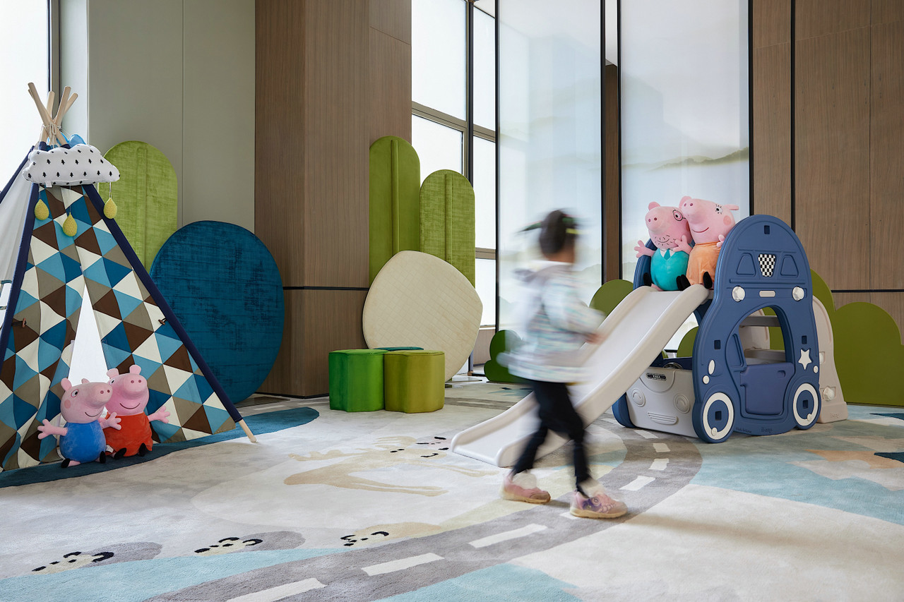 和整个空间氛围不同的是,儿童娱乐区丰富的色彩体现了孩童的内心丰盛与活泼好动。轻巧可爱的摆置与天花网丝状云朵造型在自然与天然元素的呵护中,抵消了乏闷,充满了轻松与欢快。