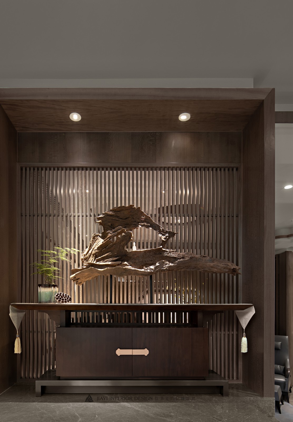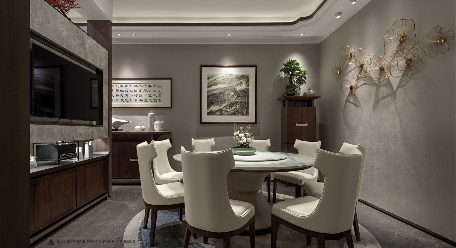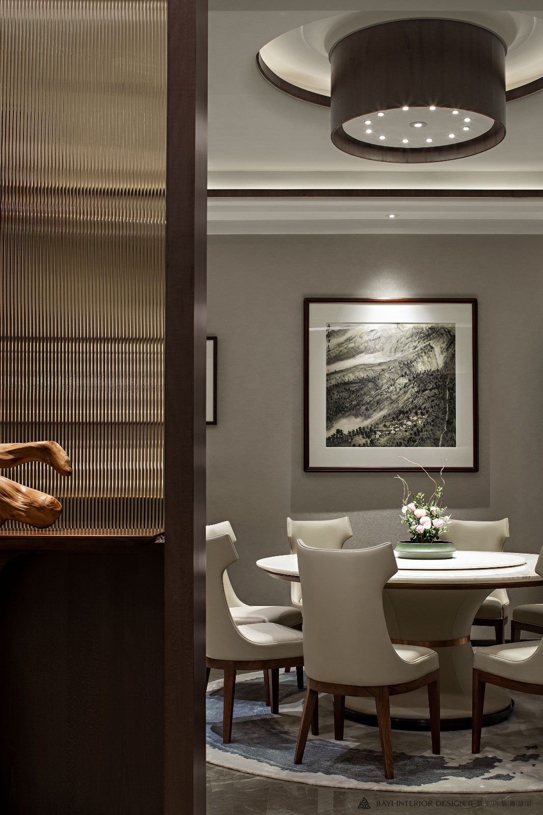 萃取传统文化精髓,传承自然美学风范,以文化符号与山水为魂,藏巧于拙,于内敛含蓄中诠释凡俗化意境里所独缺的高雅与秀美,让人置身于丹青水墨之中。立足于当下,以人为尺度,摒弃雍容繁复的装饰,将新中式元素与现代材质巧妙柔和,素雅与灵动兼得,形成了一个气定神闲、富于文化氛围和精神归属感的当代人居空间。